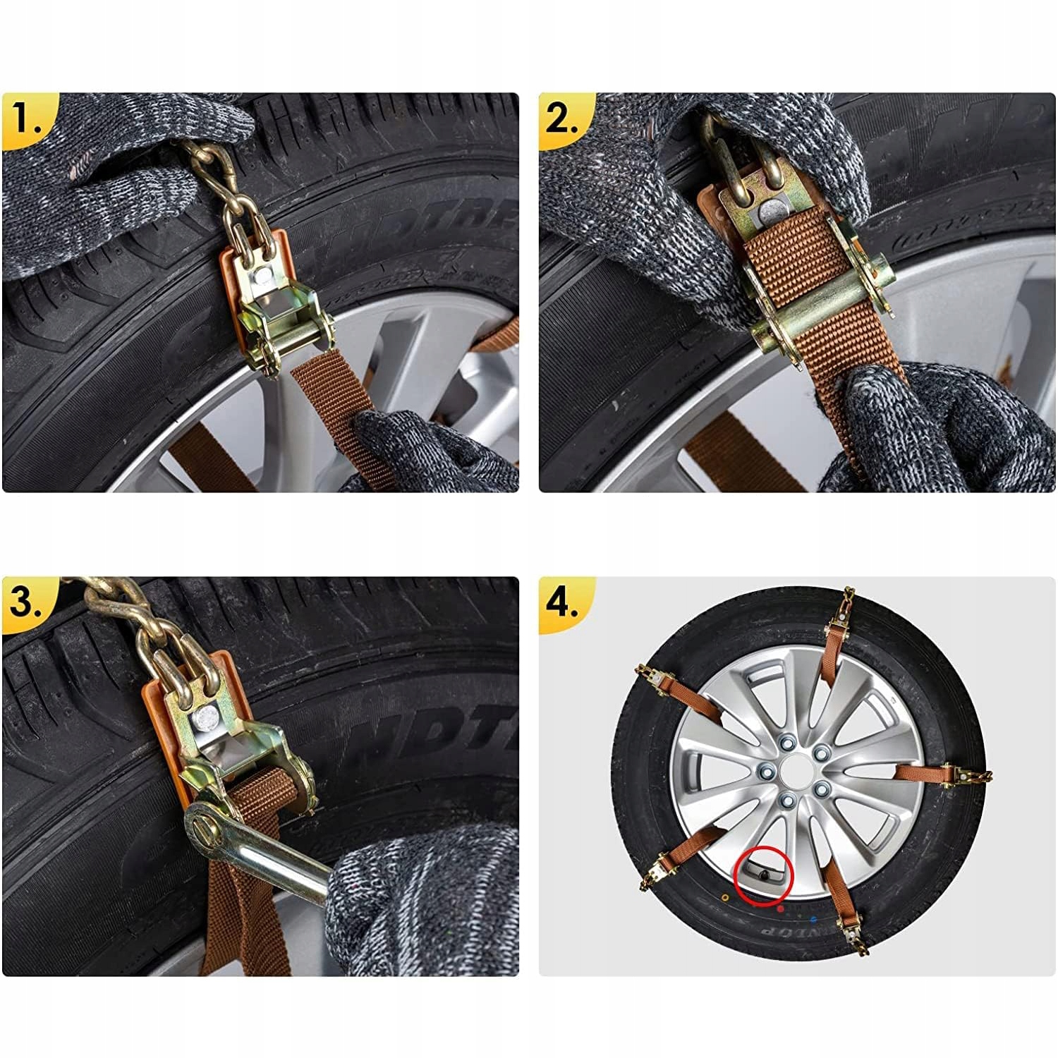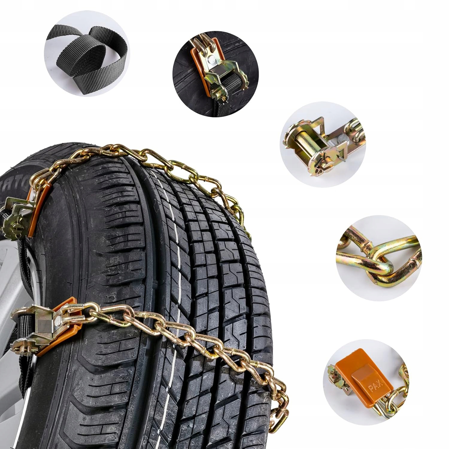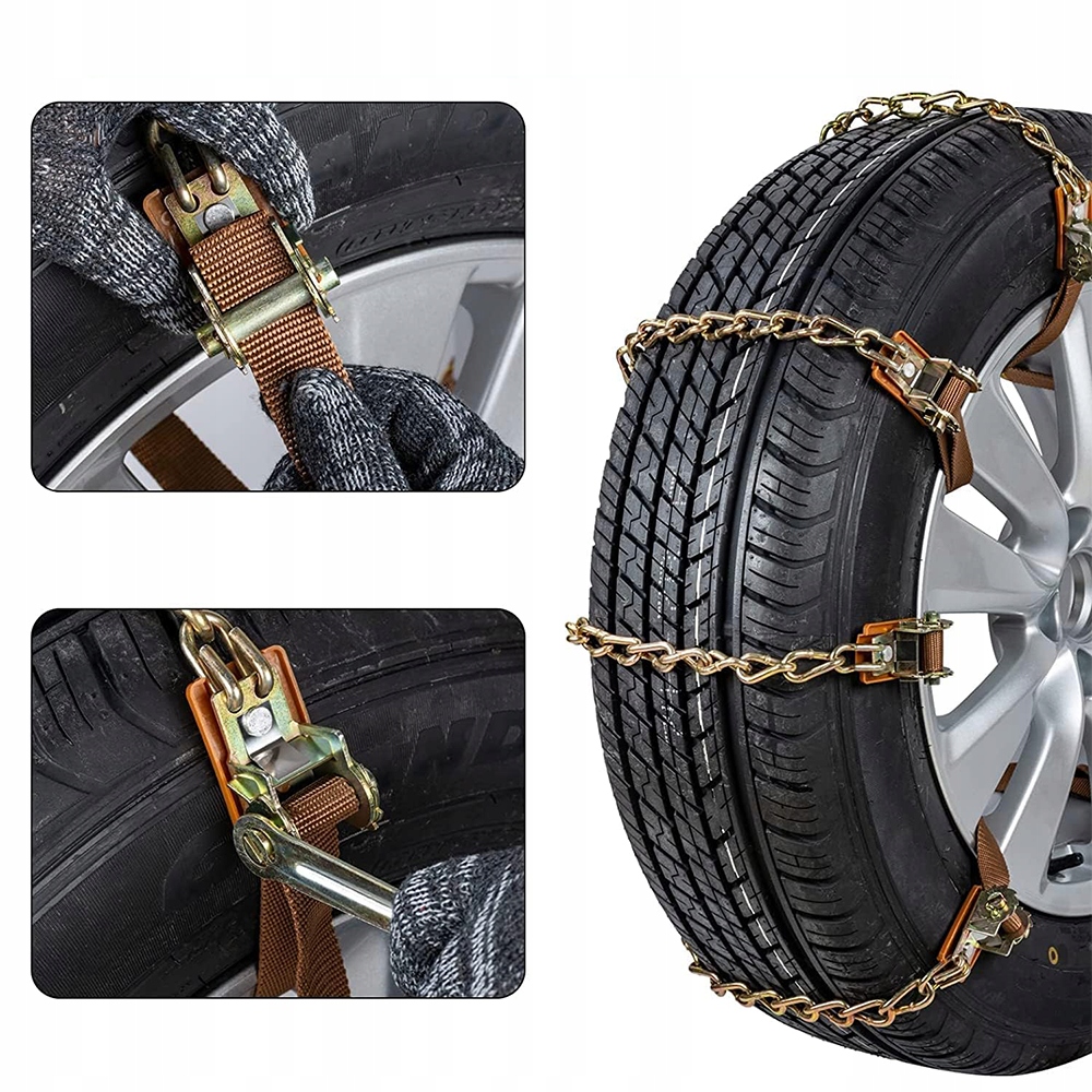 - Цепь противоскольжения изготовлена из высококачественной марганцовистой стали, оснащена нейлоновым ремешком, устойчивым к давлению и износу и выдерживающим низкие температуры до -50 градусов Цельсия.