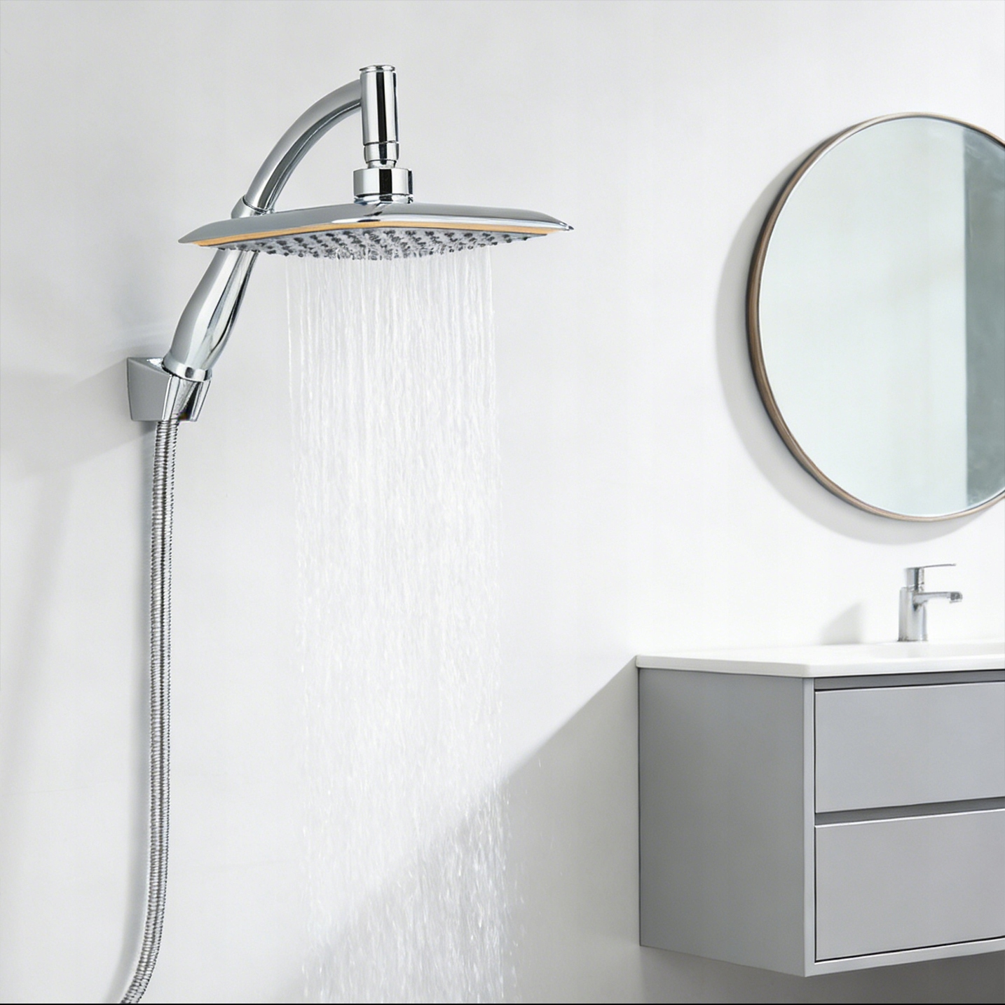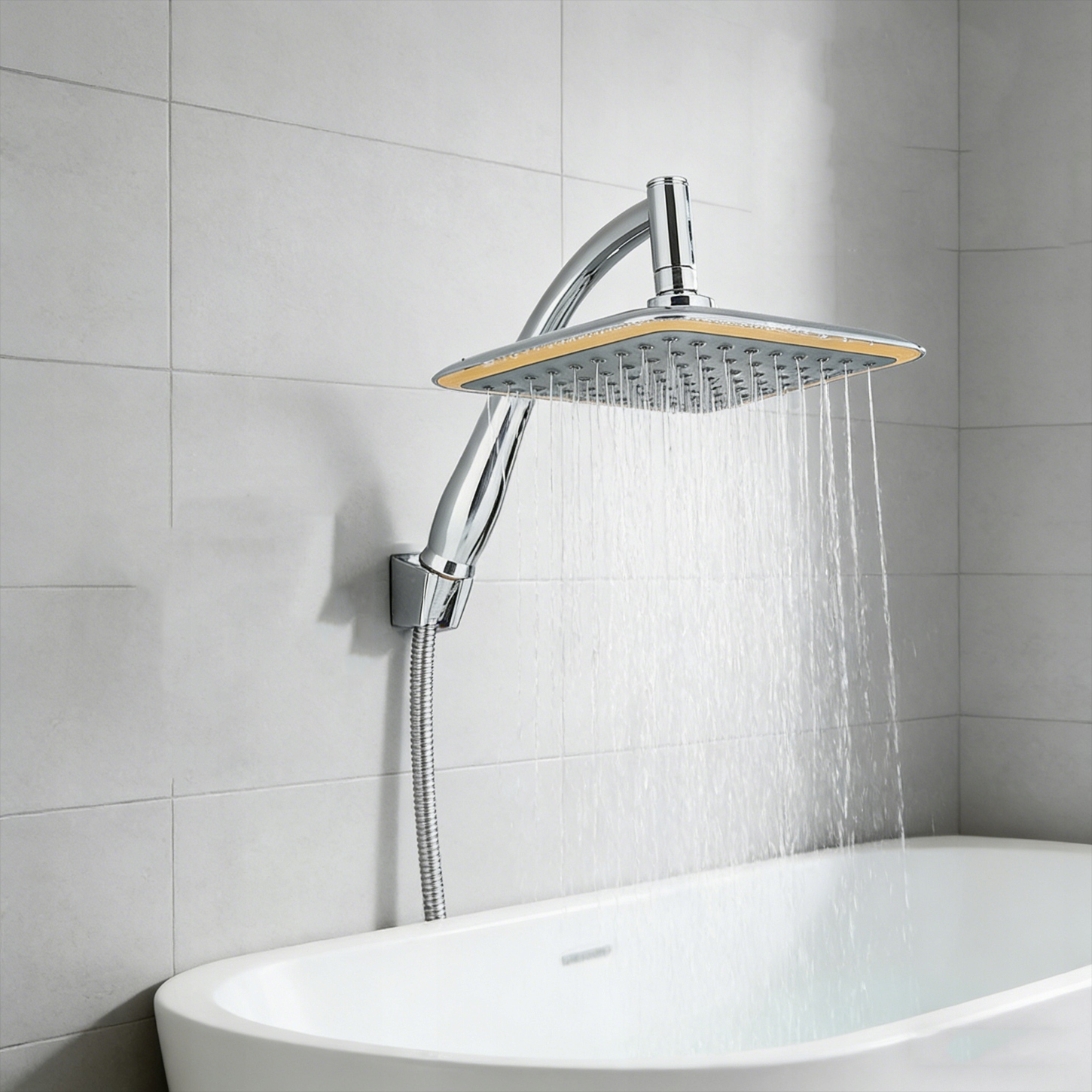 Эта душевая лейка имеет легко регулируемый угол наклона, что позволяет наслаждаться струей воды под выбранным углом. Все ваше тело будет мокрым, словно под ливнем.