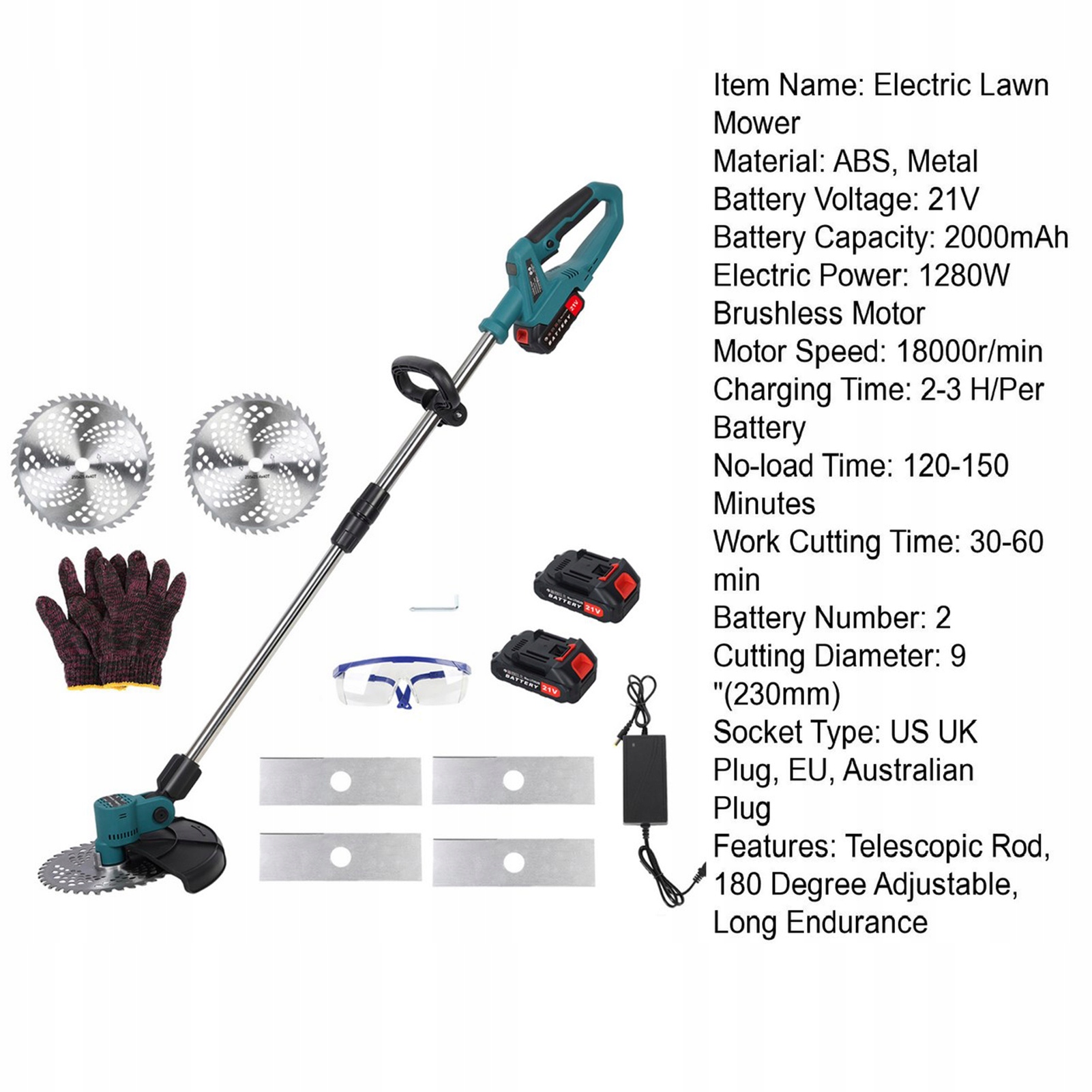 Два типа лезвий: Аккумуляторная прополочная машина с двумя разными типами лезвий поможет вам выполнить самые сложные работы. Прямые металлические лезвия подходят для стрижки газонов, веток и виноградной лозы, а круглые металлические лезвия подходят для стрижки ветвей и кустов. Многофункциональный дизайн позволяет пользователям удобно подстригать и стричь на неровной поверхности, идеально подходит для обрезки дворов, садов, кустарников, дорожек.