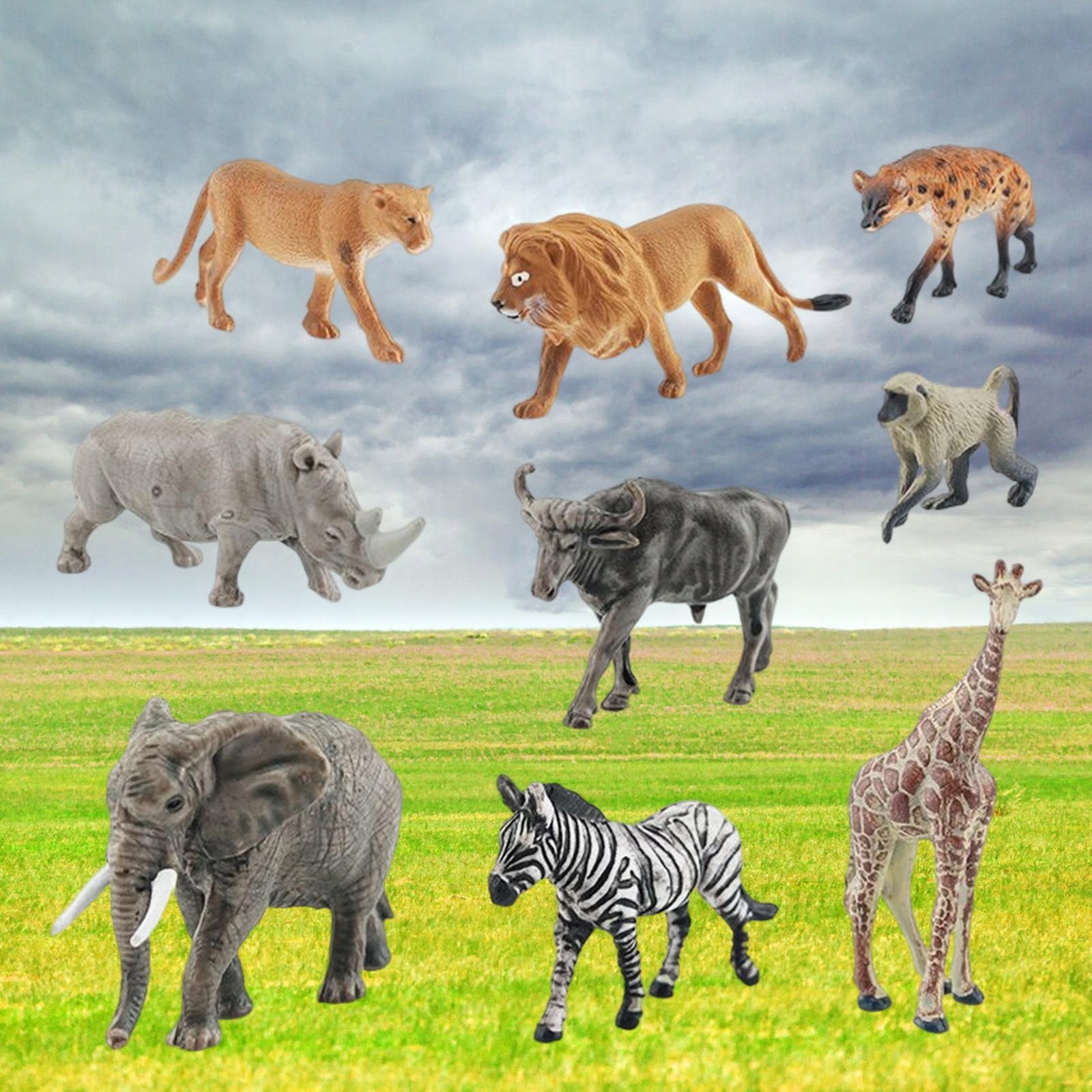 9 фігур тварин, включаючи зебру, лева,