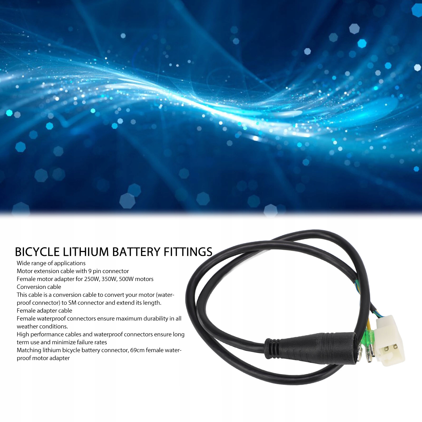 1. ШИРОКОЕ ПРИМЕНЕНИЕ: Это удлинительный кабель двигателя с 9-контактным разъемом. Гнездовой адаптер двигателя подходит для двигателей мощностью 250 Вт, 350 Вт, 500 Вт.