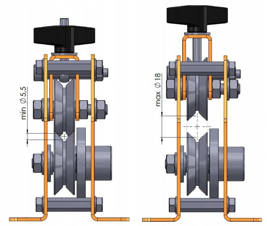 - ролики с буквенным вырезом V - позволяют выпрямлять проволоку диаметром от 5,5 мм до 18 мм