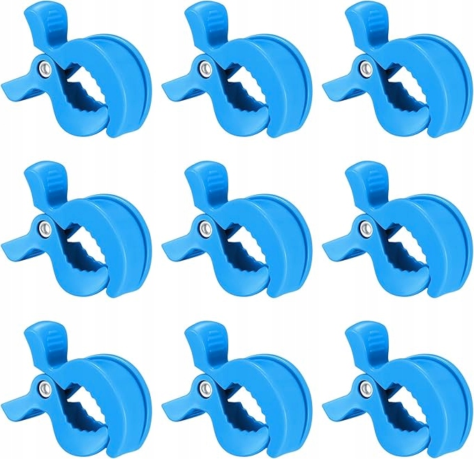 Практичный набор синих зажимов для крепления игрушек, одеял и аксессуаров к детской коляске. Изготовленные из пластика с гладкими краями, они обеспечивают долговечность и безопасность. В комплект входят 9 клипс, идеально подходящих для быстрого крепления к различным частям коляски.