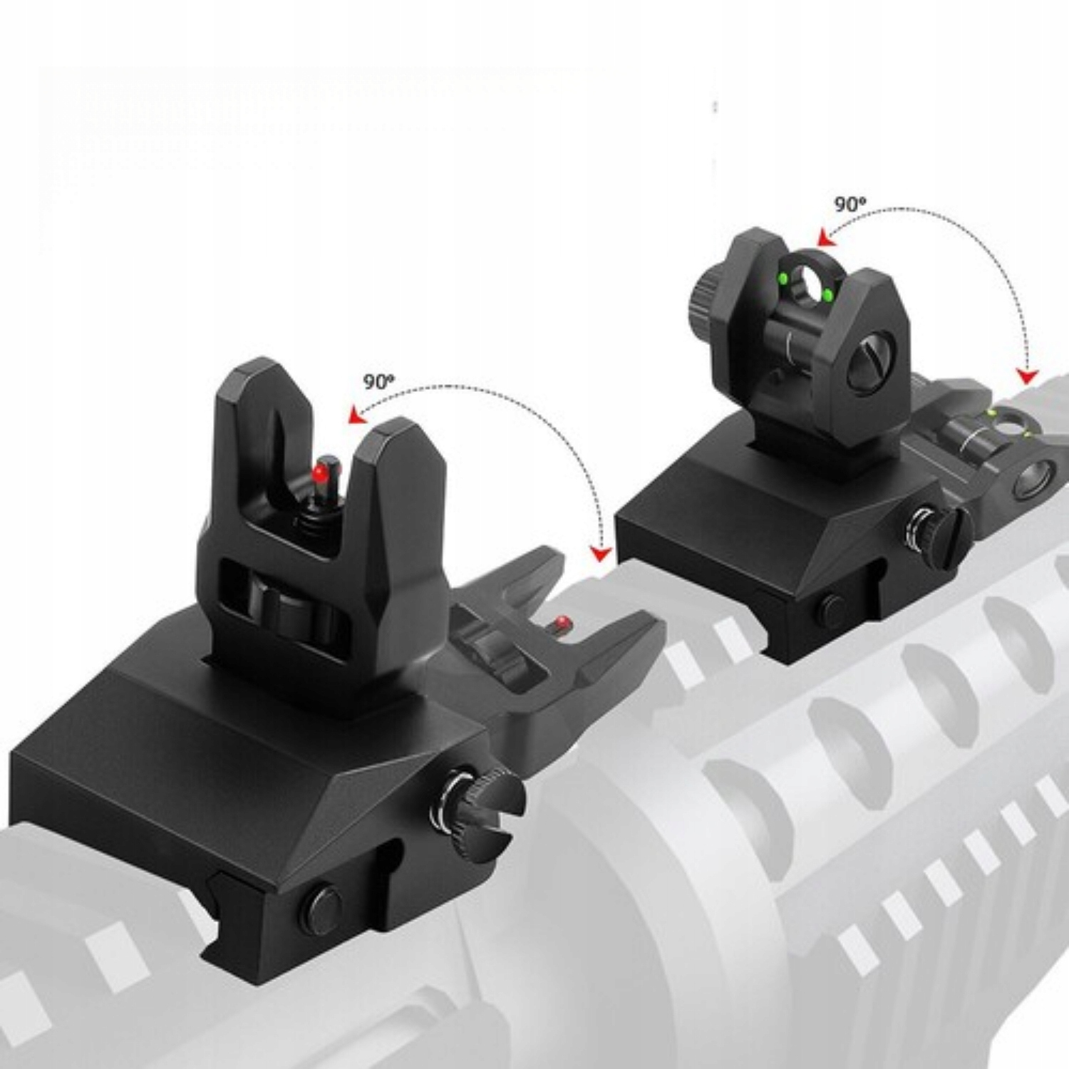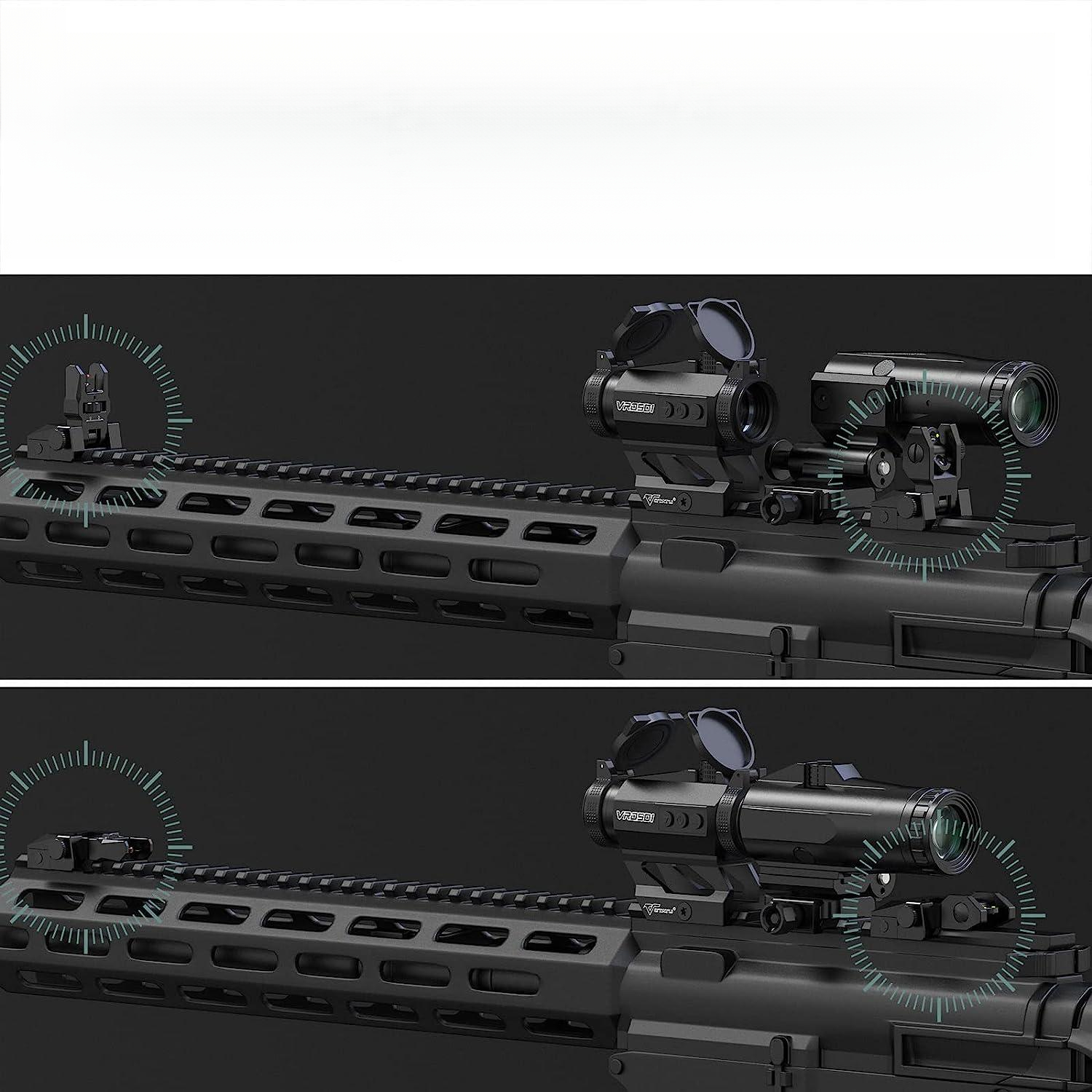 AR Flip-Up Persions с пружиной можно легко развернуть под углом 90 ° с левой кнопкой, предназначенной для быстрого развертывания, чтобы найти цели. Избегайте шоков AR Flip-Up View спереди и сзади, а ручки падают, долговечны и долговечны.