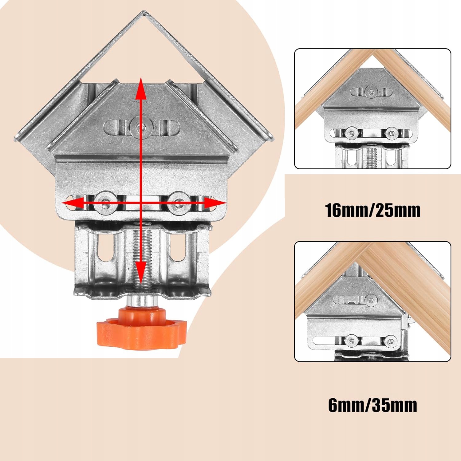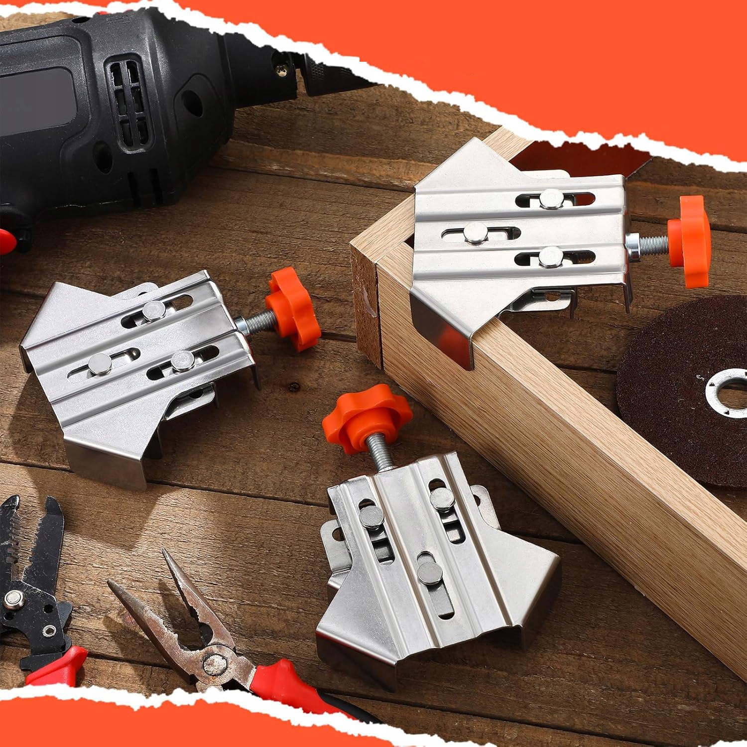 Угол 90°: этот угловой зажим с углом 90° гарантирует надежную фиксацию. Прочная фиксация, обеспечиваемая зажимом, облегчает работу по дереву и обработку, обеспечивая точные и точные результаты.