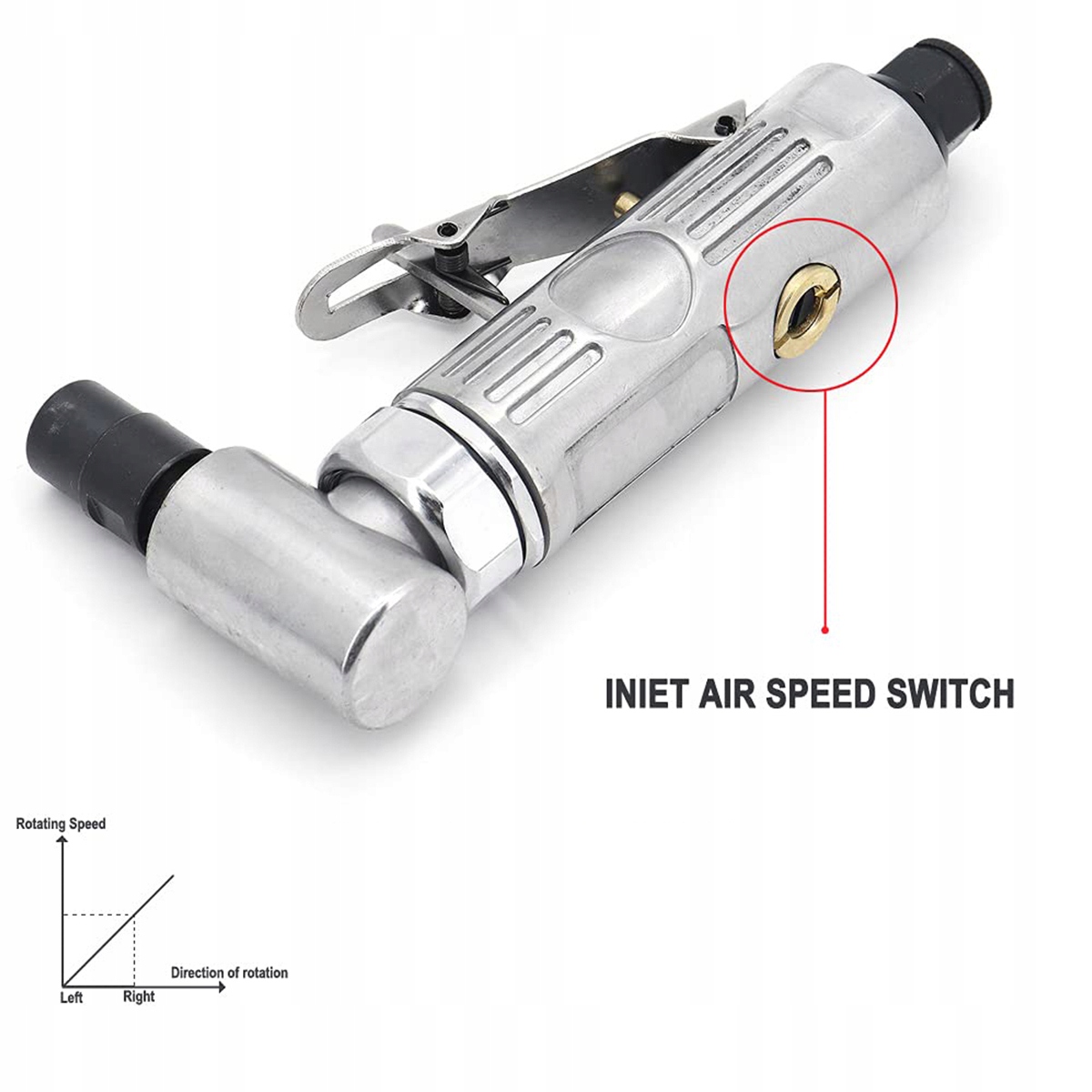 90° ПНЕВМАТИЧНА ШЛІФУВАЛЬНА МАШИНА 1/4'' КУТОВИЙ ХВОСТОВИК 6ММ VOREL 20000ОБ/ХВ