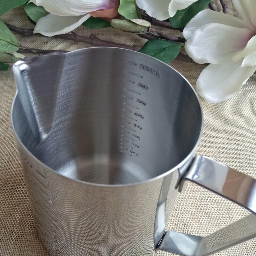 Поливающийся горшок с из нержавеющей стали 900 мл с твердой ручкой. С шкалой внутри, удобно для измерения и использования. Он имеет маленький, облегчает заливную жидкость. Это может быть жидким и постоянным, молоко, шоколад, кофе, сливки, питье и так далее.