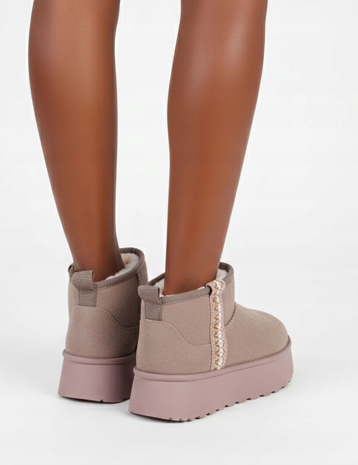 9001 БЕЖЕВЫЕ УТЕПЛЕННЫЕ БОТИНКИ НА ТОЛСТОЙ ПОДОШВЕ, СНЕЖНЫЕ БОТИНКИ НА ПЛАТФОРМЕ 39