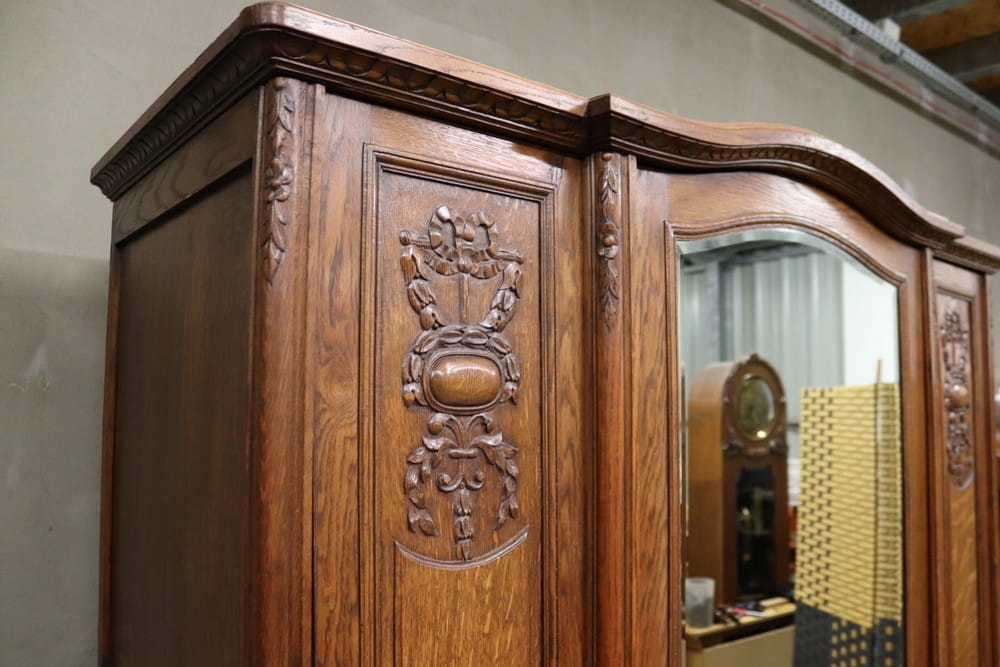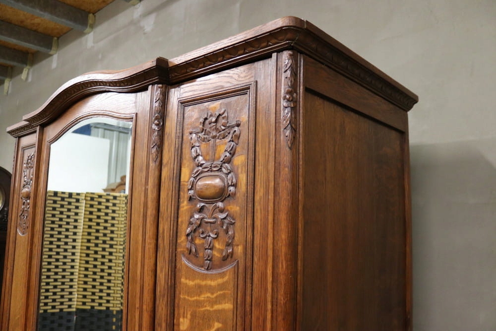 9098 Старый, красивый, просторный шкаф с хрустальным зеркалом
