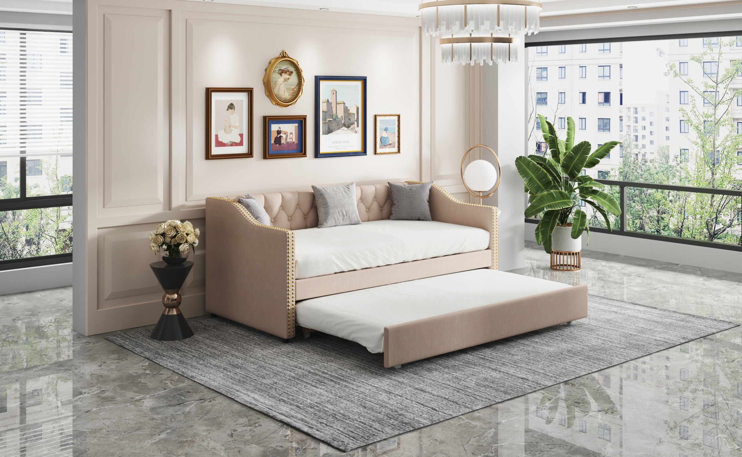 Детская кровать 90x200, выдвижная, бежевая, молодежное белье