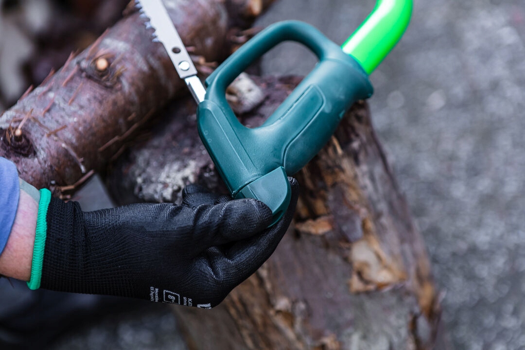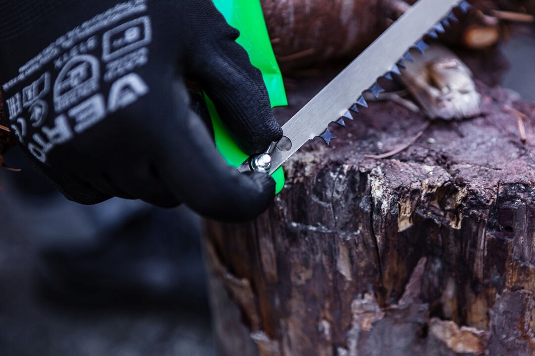 Vertoble Cable (ссылка. Изготовлен из высококачественного металла с овальным порошковым окрашенным крестом. Преимущество - это покрытие, защищающее руку от травм. Возможность использования различных лопастей позволяет вам разрезать как влажную, так и сухой древесину.