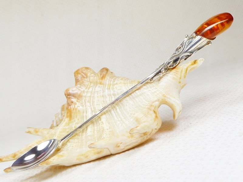 911/12 Чайна ложка срібна з бурштином -РУЧНА РОБОТА-