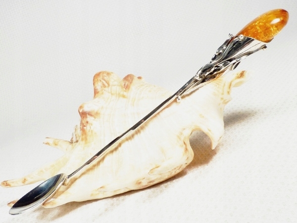 911/5 чайна ложка срібла з бурштином -HAND MADE-