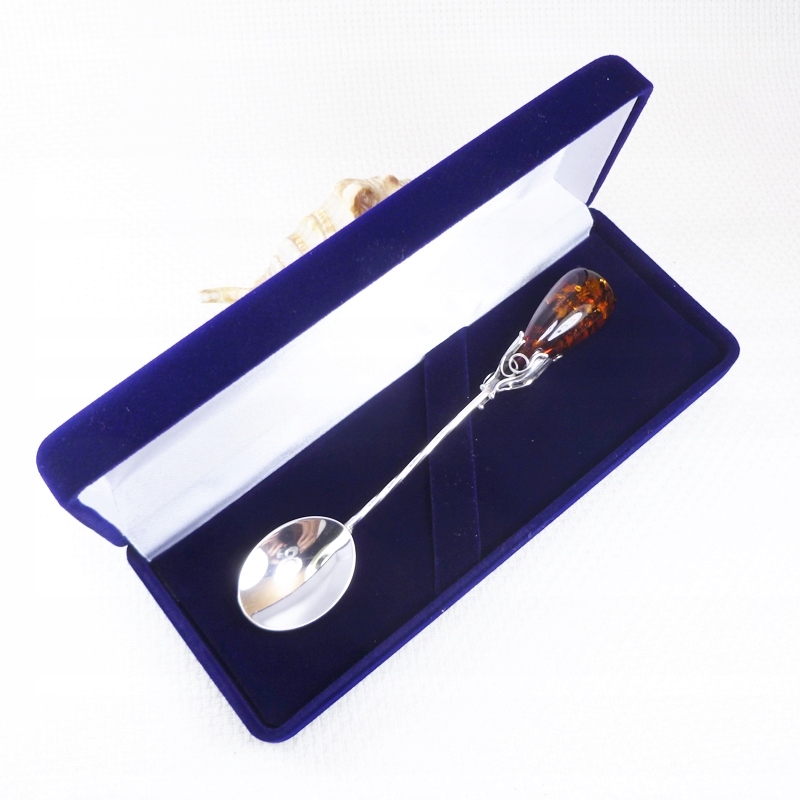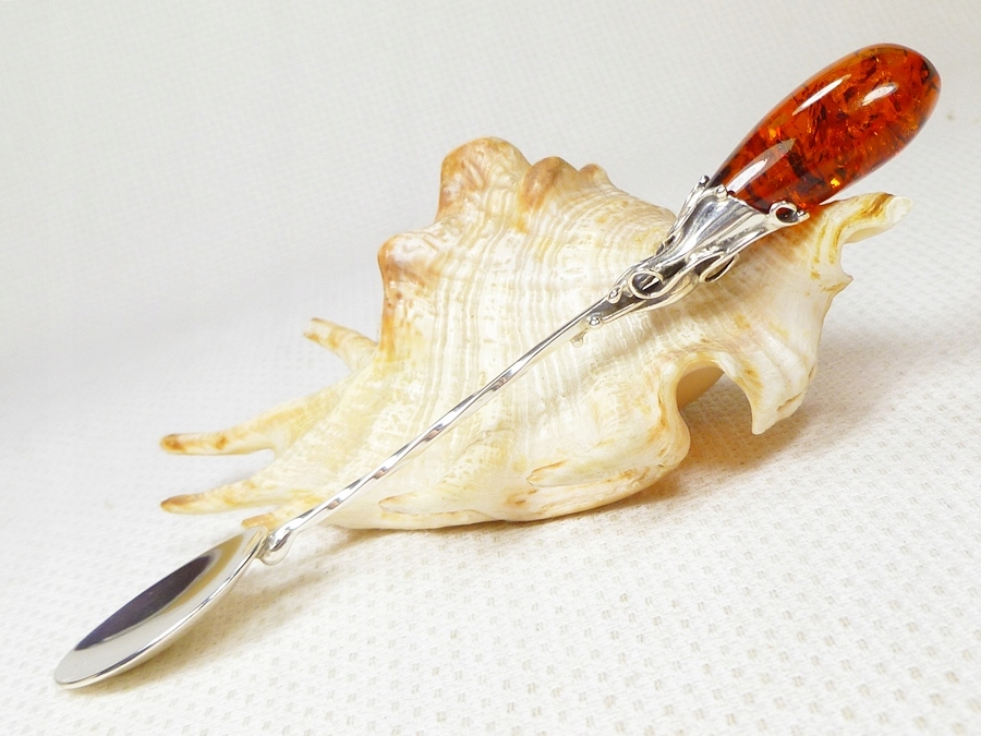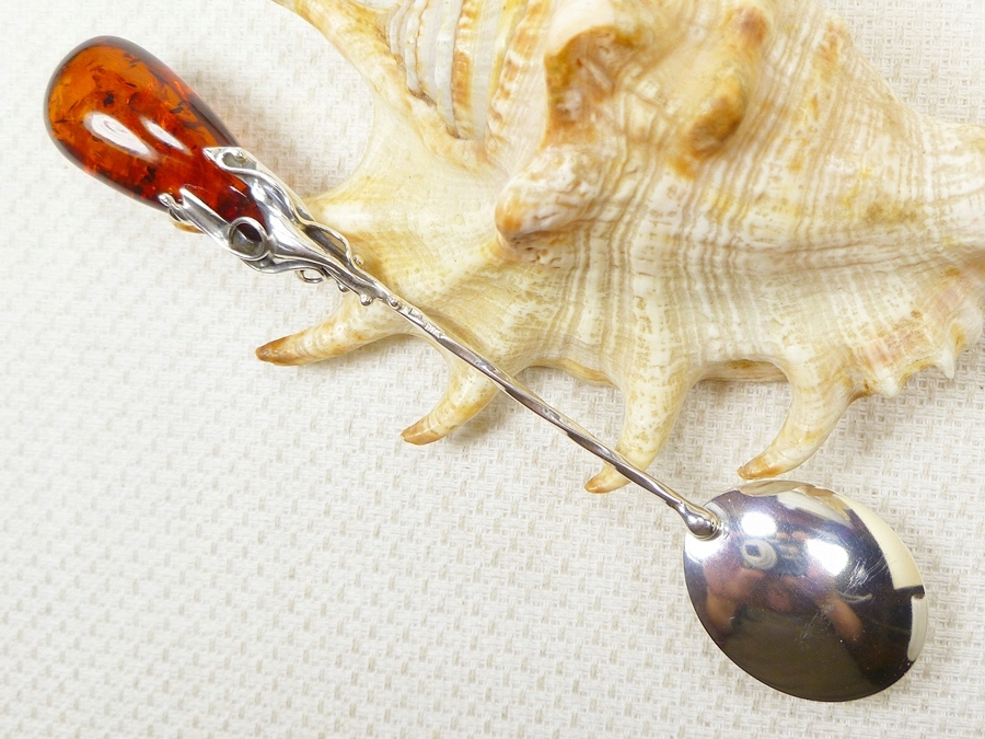914/12 чайна ложка срібла з бурштином -РУЧНА РОБОТА-