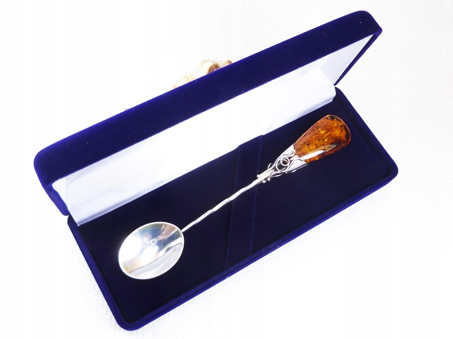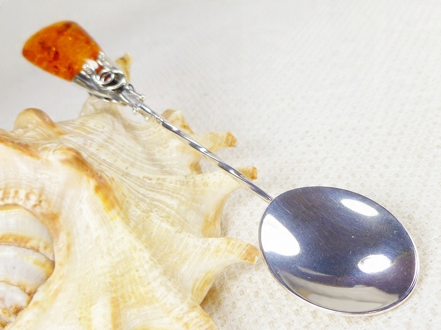 Серебро Чайная ложка 914/4 с янтарем -РУЧНАЯ РАБОТА-