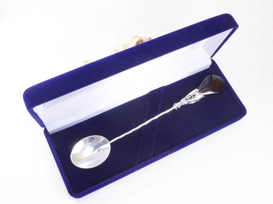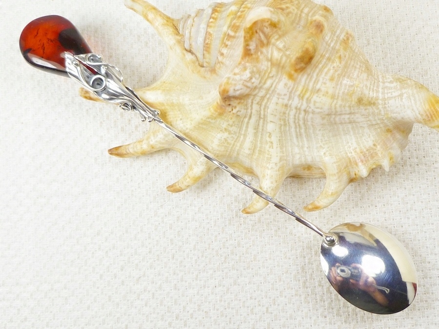 914/6 чайна ложка срібла з бурштином -РУЧНА РОБОТА-