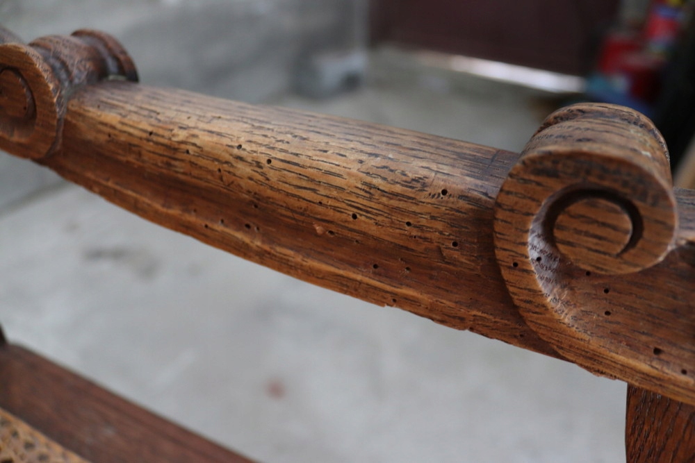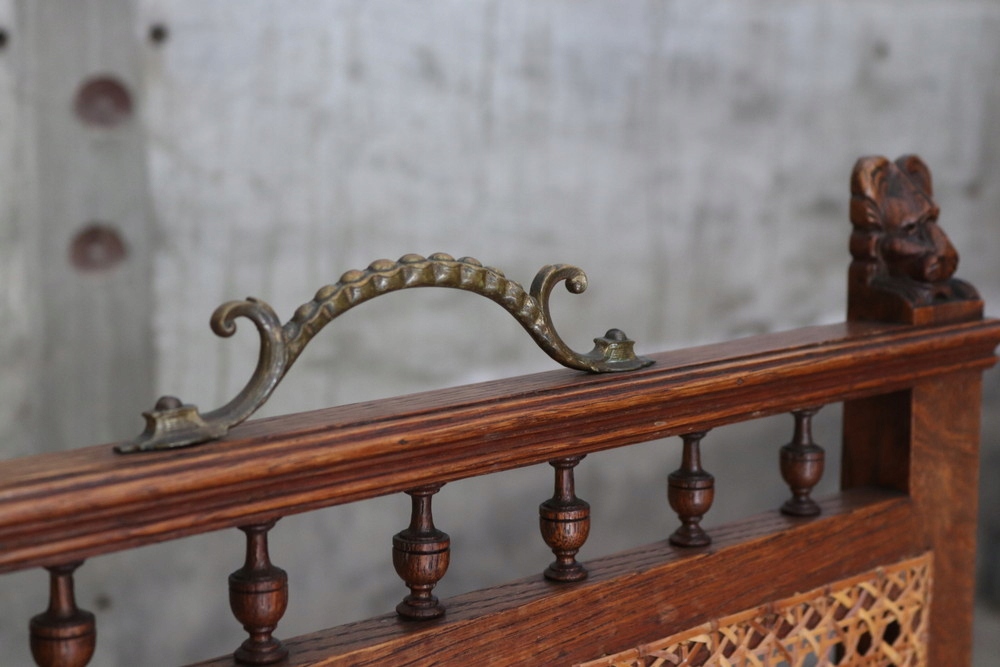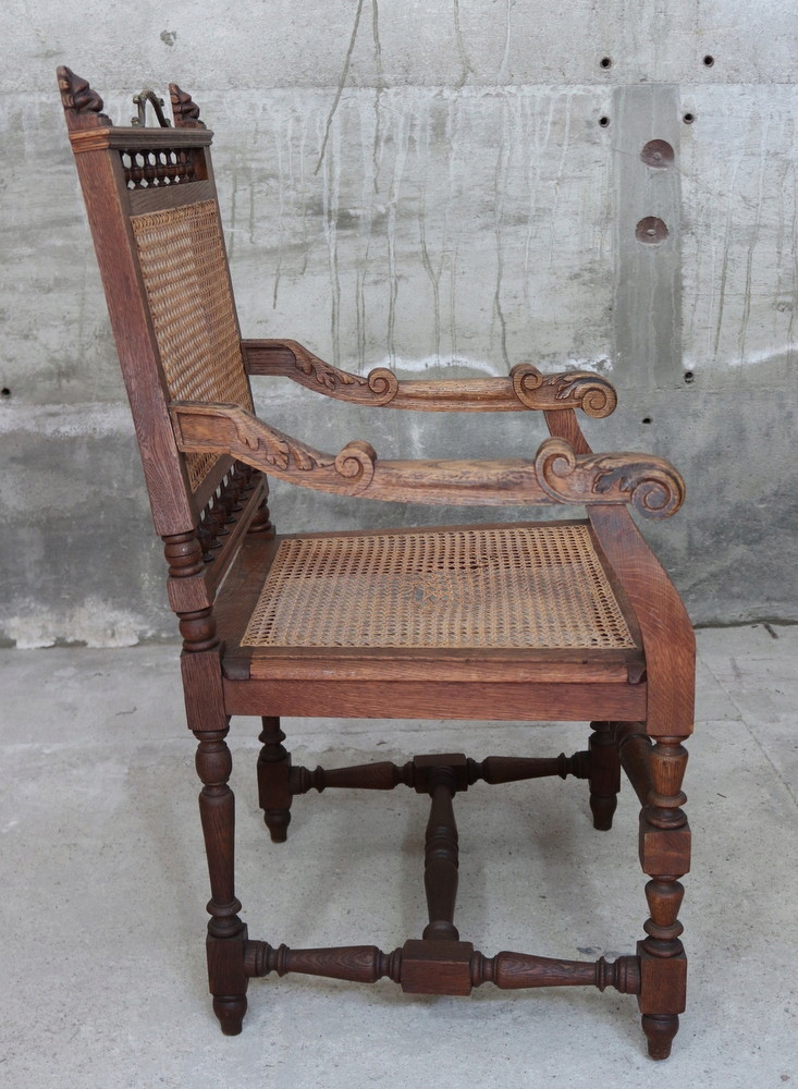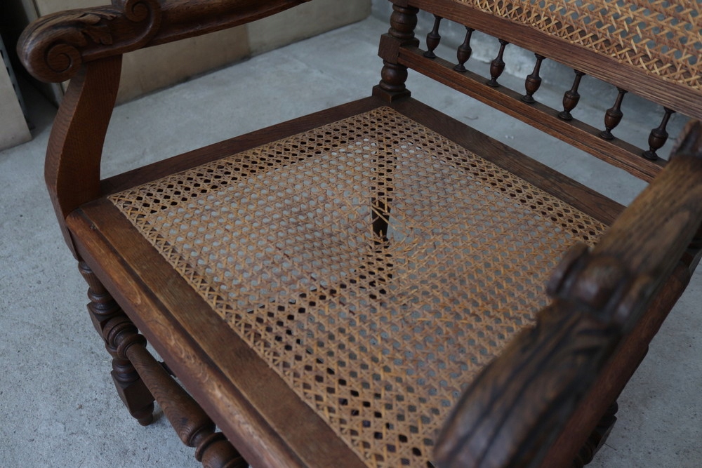 9206 Старое, древнее резное, эклектичное кресло с Рафией