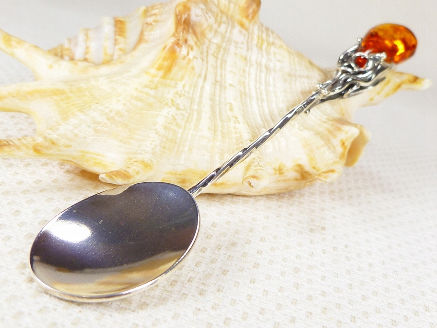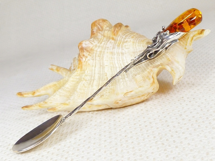 922/15 Серебряная ложка с янтарем -РУЧНАЯ РАБОТА-