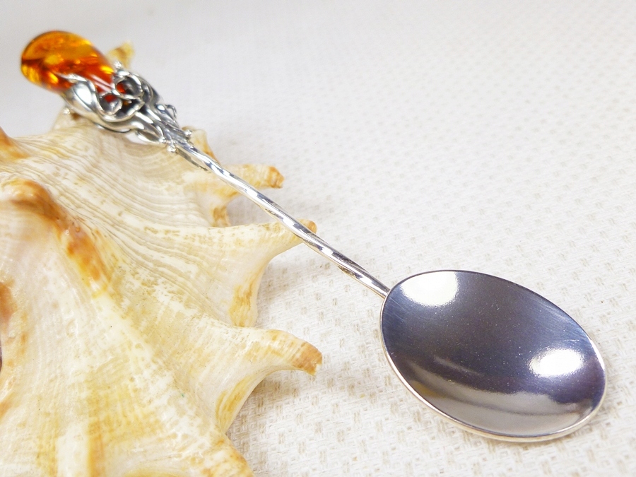 922/15 чайна ложка срібна з бурштином -РУЧНА РОБОТА-