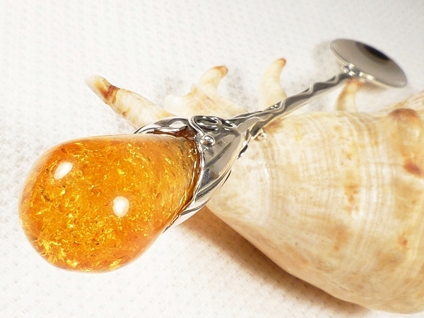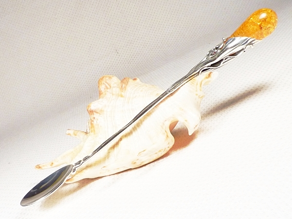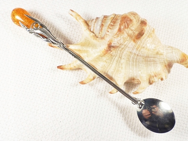 Серебро Чайная ложка 924/5 с янтарем -РУЧНАЯ РАБОТА-