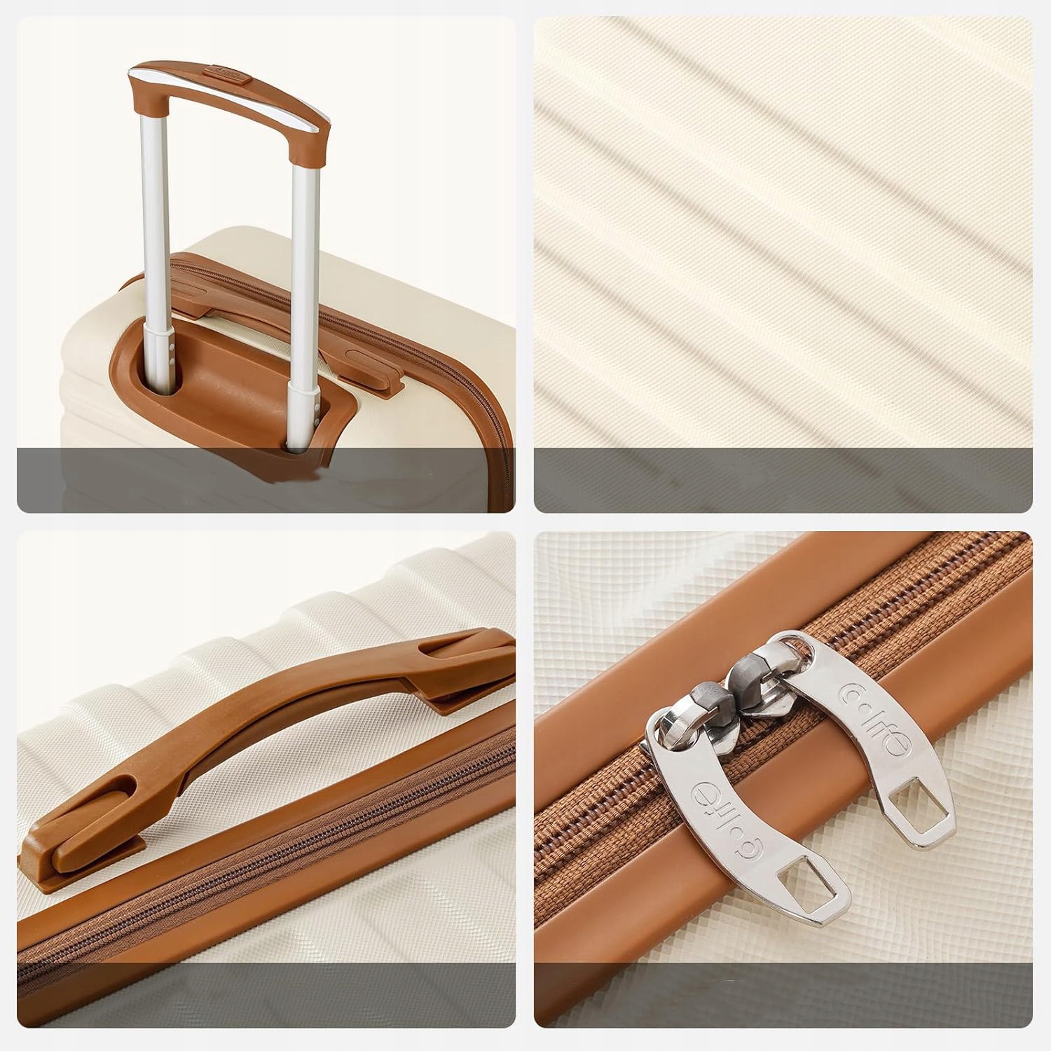 Наши чемоданы изготовлены из твердого материала ABS, сильны, легкие и устойчивы к царапинам. Алюминиевая телескопическая ручка позволяет вам с небольшим усилием нажимать или вытащить чемодан. 4 многонаправленные вращающиеся колеса движутся плавно и тихо. Боковая ручка может быть очень удобной при подъеме чемодана с высоким весом.