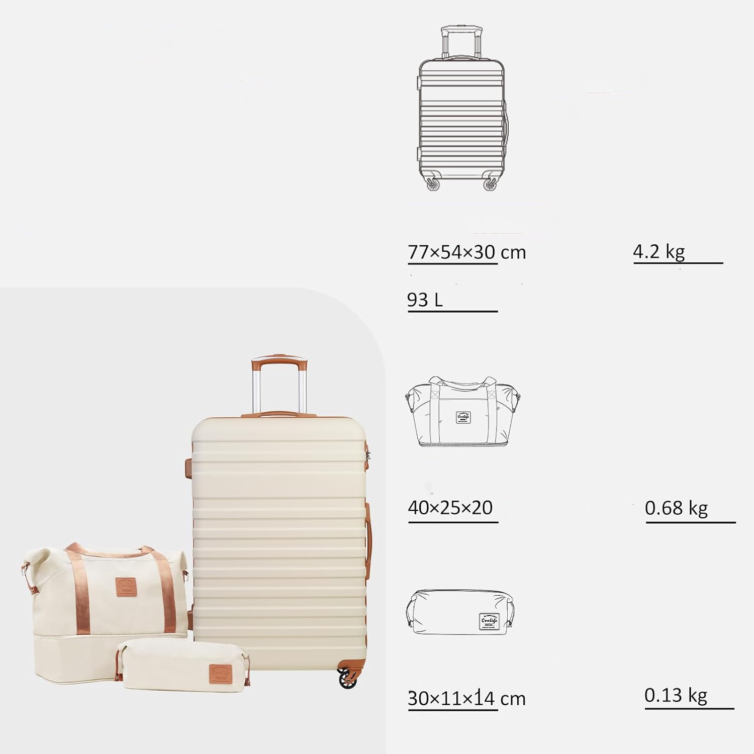Этот набор для перемещений содержит 1 ручную багаж (77 x 54 x 30 см), 1 расширяемая дорожная сумка, 1 косметолог. Уникальный выбор может соответствовать вашему путешествию, чтобы сделать жизнь проще и удобнее, сэкономив время при выборе правильного чемодана или туристической сумки.