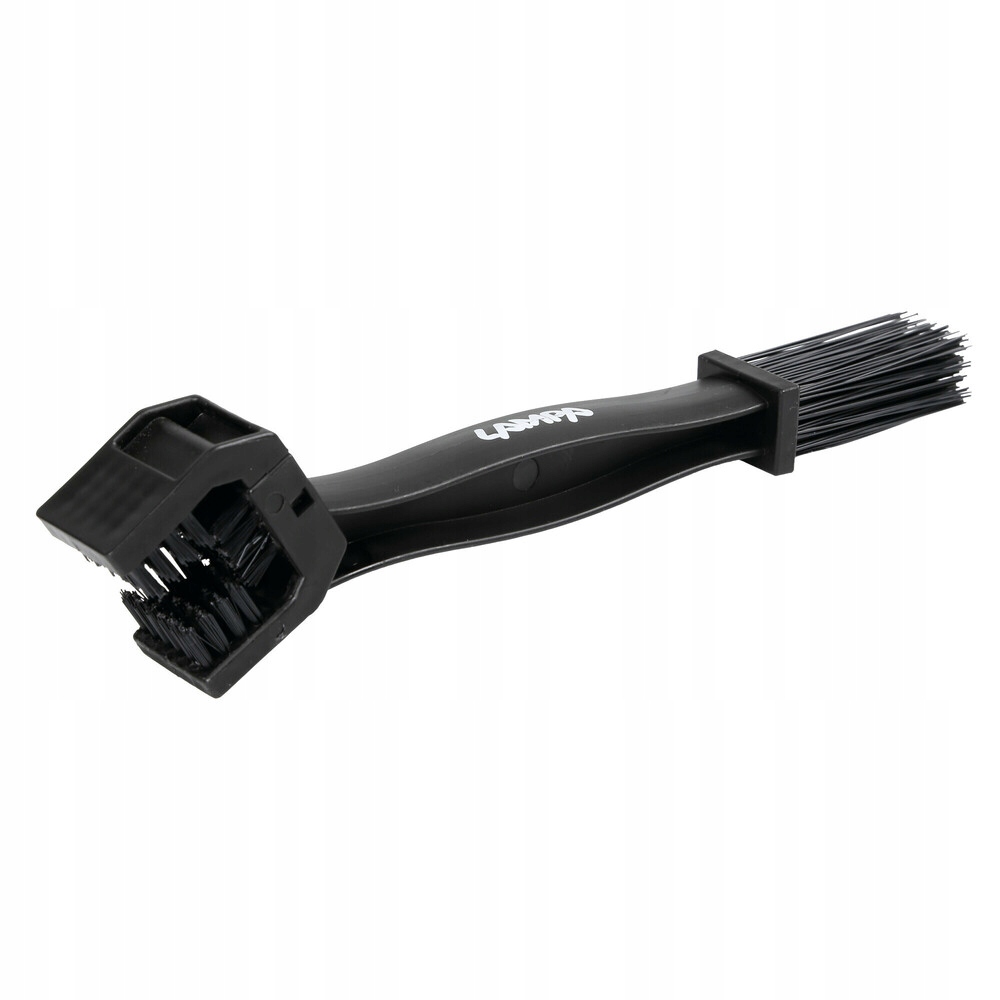 Почистите цепь компактной стороной щетки, чтобы очистить все четыре стороны цепи. Используйте длинную щетину для очистки других компонентов, таких как звездочки, переключатели, шатуны и тормоза. Идеальная щетка для очистки цепи перед смазкой.