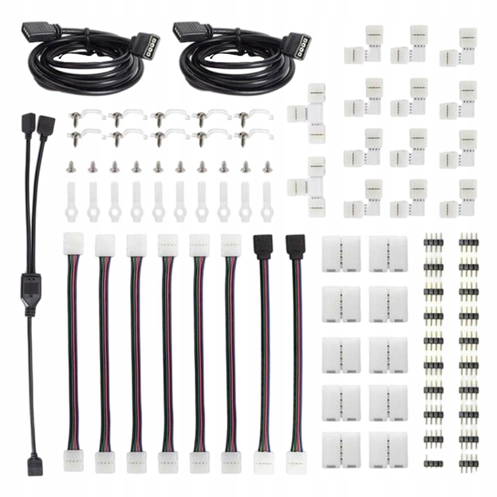 Содержимое упаковки: 10 беспаянных разъемов RGB 10 мм, 6 двусторонних кабелей RGB 10 мм, 2 зажима для переноски оболочки RGB, 20 разъемов RGB, 1 RGB 1/2, 12 L-образных углов RGB 10 мм, 2 уголка RGB 10 мм, 10 шт. Монтажные зажимы для голой платы 10 мм, 10 клеевых монтажных зажимов 10 мм, 20 винтов, 2 удлинительных кабеля RGB длиной 1 м.