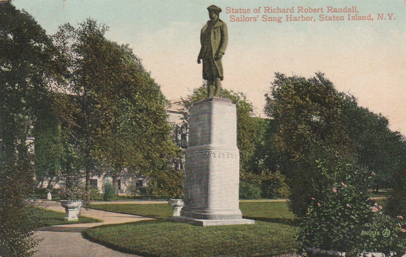 95.США, Статен-Айленд/Нью-Йорк, памятник Р.Р.Рэндаллу, довоенная открытка.