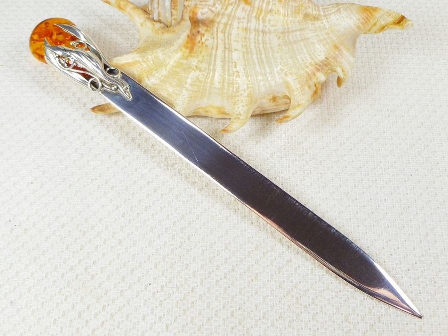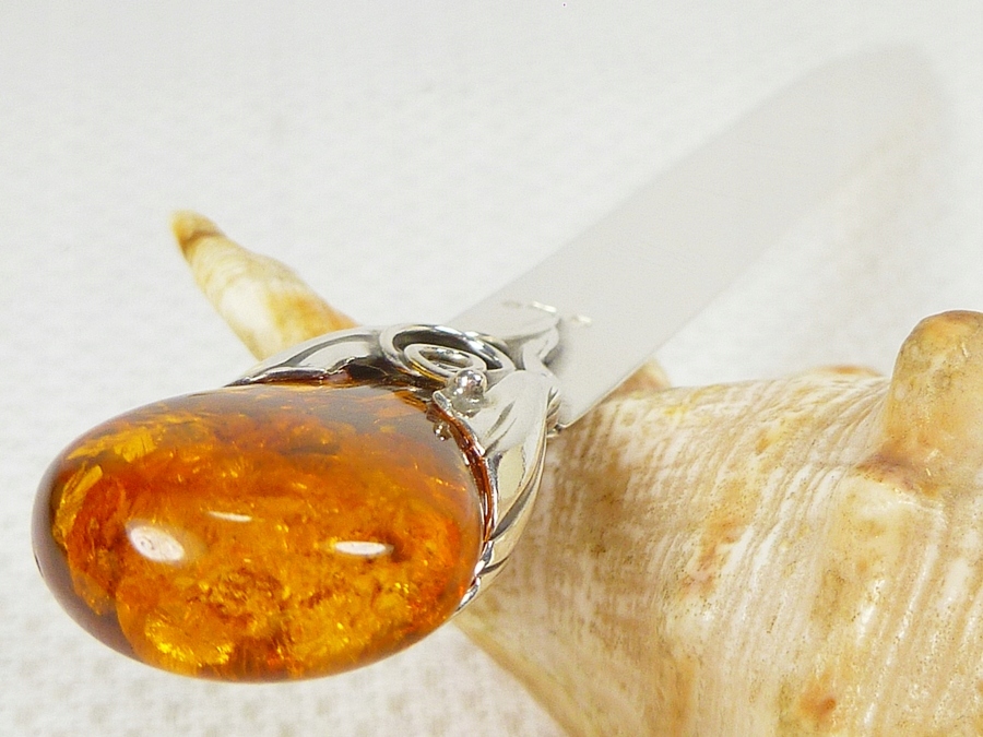 Серебряный нож с натуральным балтийским янтарем Изготовлен вручную, с использованием сырья высочайшего качества, на предприятии с сорокалетними традициями. .