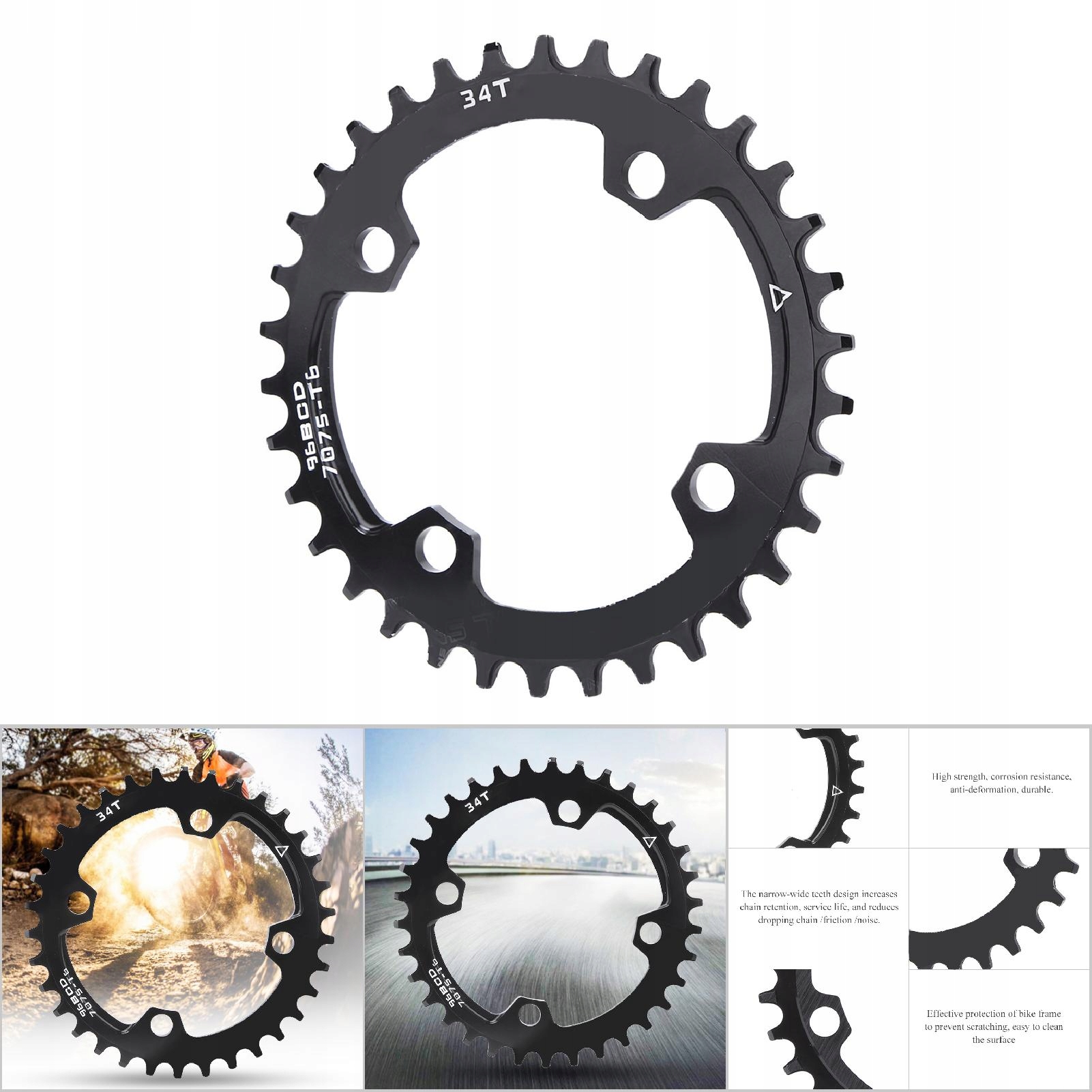 34T: BCD:96 мм (Четыре отверстия заключены в квадрат, на расстоянии 96 мм от центра двух отверстий)