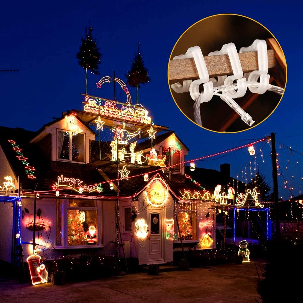 ✅ Идеально подходит для установки — разработан специально для подвешивания гирлянд на желобах крыши, что позволяет легко украшать и освещать открытые пространства.