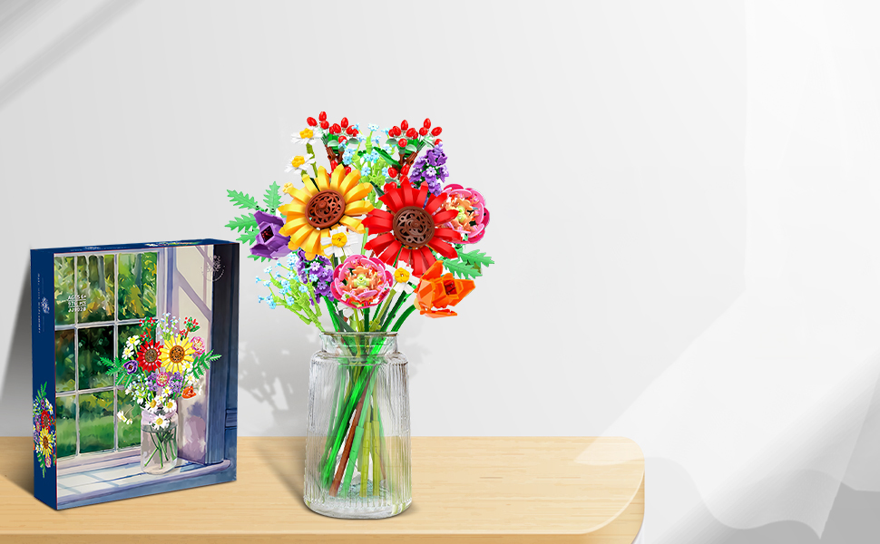 🌟976 штук искусственных цветов Встреча летнего солнцестояния Украшение дома Цветы в сборе из строительных блоков🌟