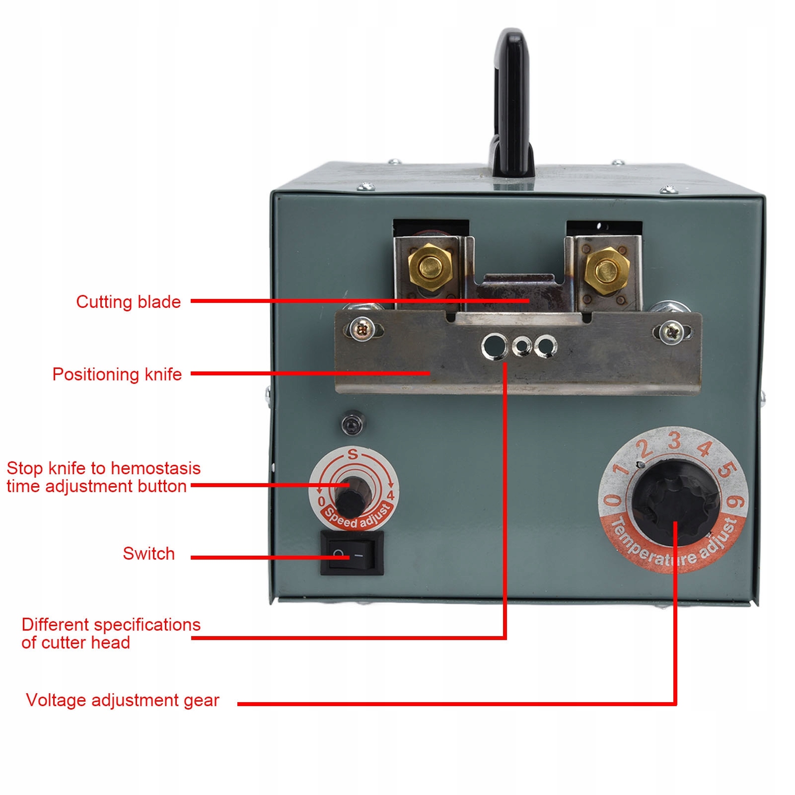 2. Регулировка температуры ножа: Шестеренчатый переключатель 0-6 используется для быстрого зажима и гемостаза. Время остановки ножа для остановки кровотечения можно регулировать от 0 до 4 секунд.