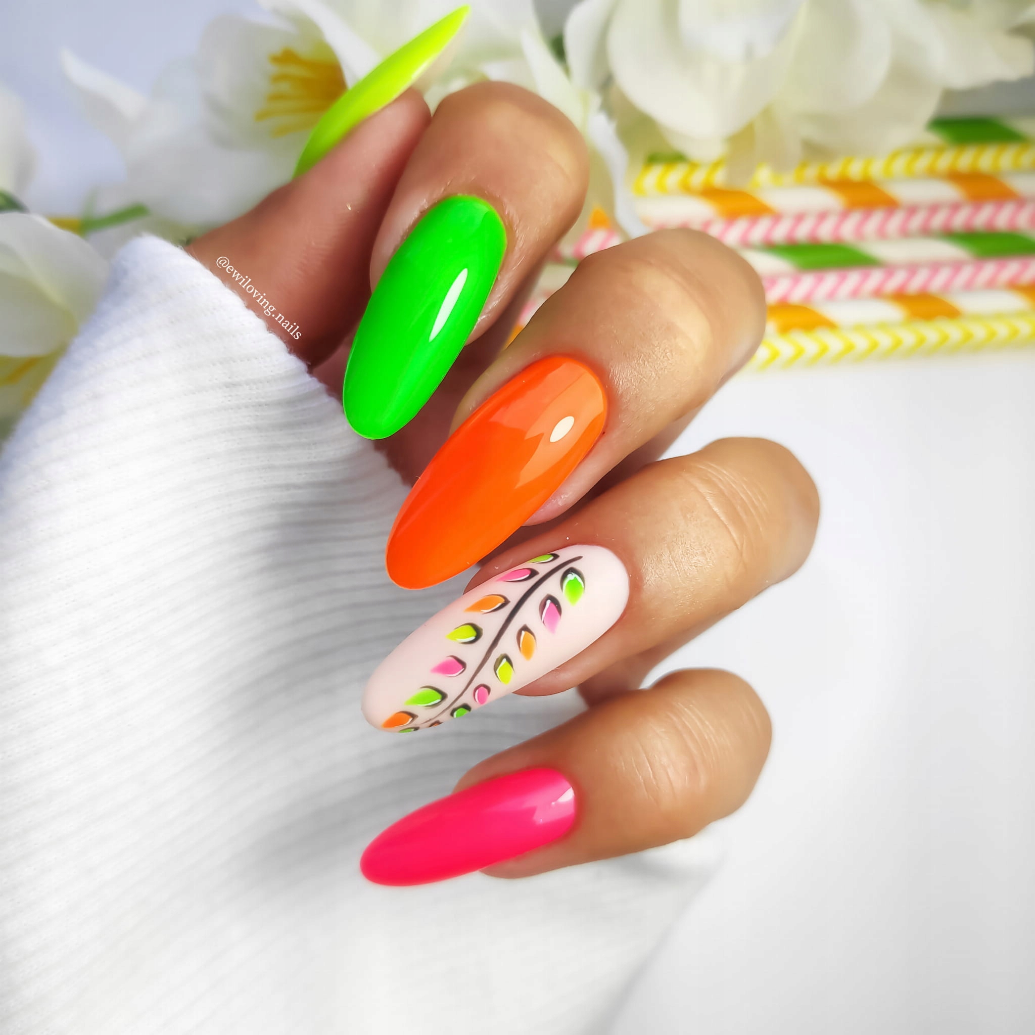 Красивые неоновые цвета означают, что вам больше не нужны дополнительные украшения для очаровательной гибридной укладки ногтей.