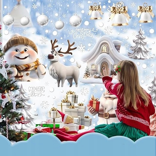 9X SAMOPRZYLEPNE NAKLEJKI ŚWIĄTECZNE NA OKNO SZYBĘ BIAŁE DEKORACJA OZDOBA