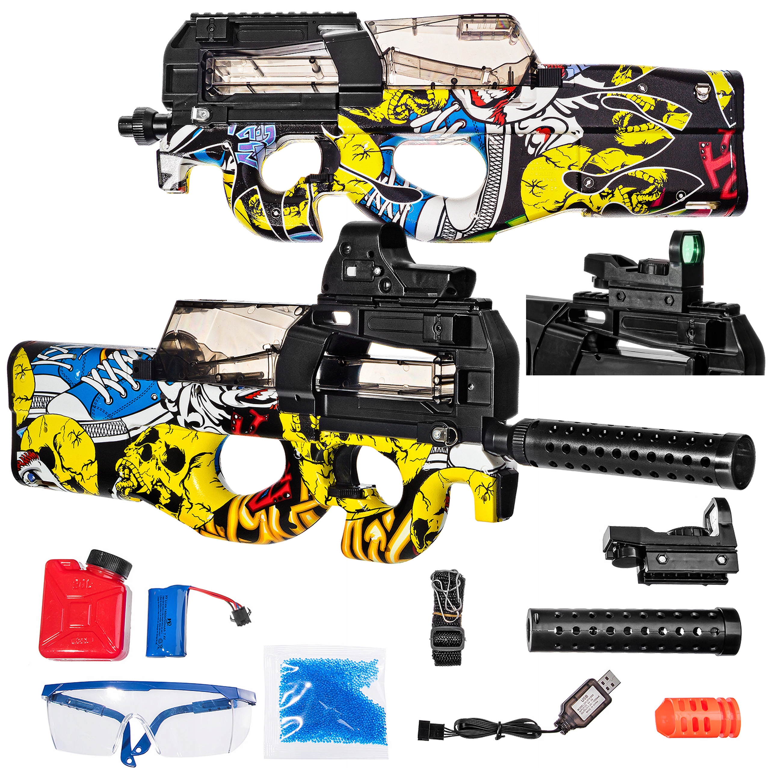 ВИНТОВКА P90 ДЛЯ ГЕЛЕВЫХ ШУМ (7-8 ММ) АВТОМАТИЧЕСКАЯ БАТАРЕЯ + ПОДАЧА ШАРОВ