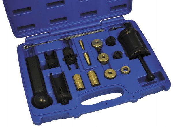 Съемник для демонтажа форсунок FSI, съемник для демонтажа форсунок FSI, инерционный молоток, конус для установки колец камеры сгорания, 3 редукционные втулки для установки уплотнений камеры сгорания, штифт для установки форсунок FSI, съемник для демонтажа ТНВД.