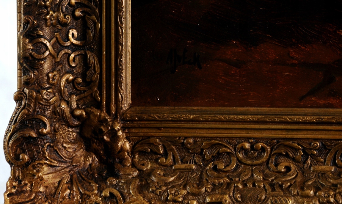 - В левом нижнем углу подпись Художника - A.J. v Eck (A.J. van Eck).
