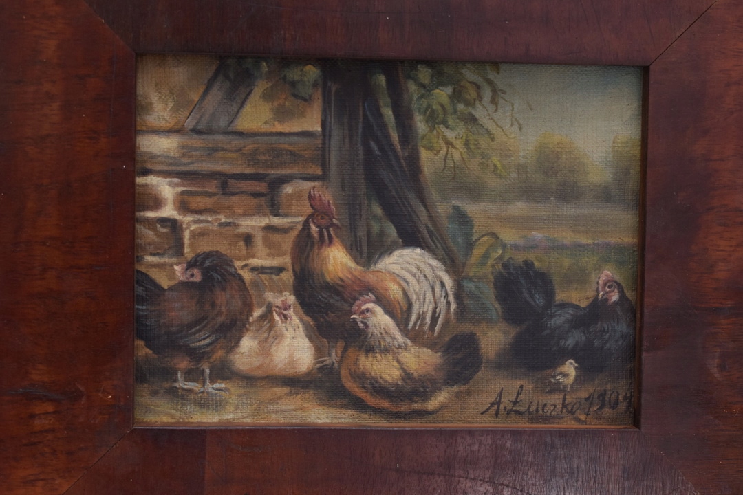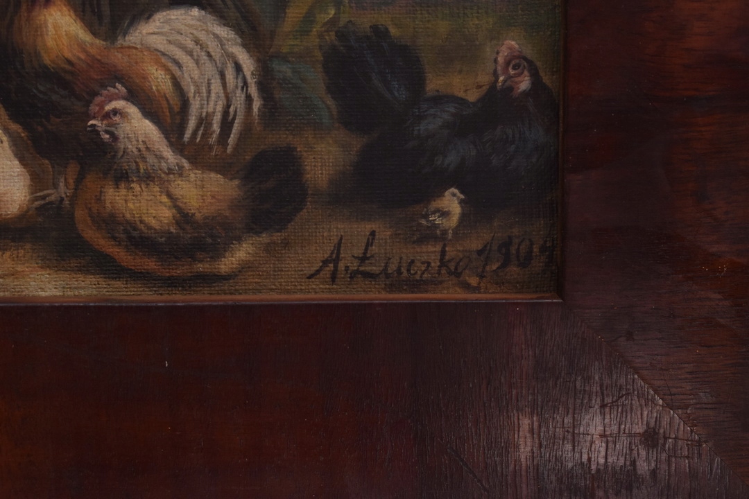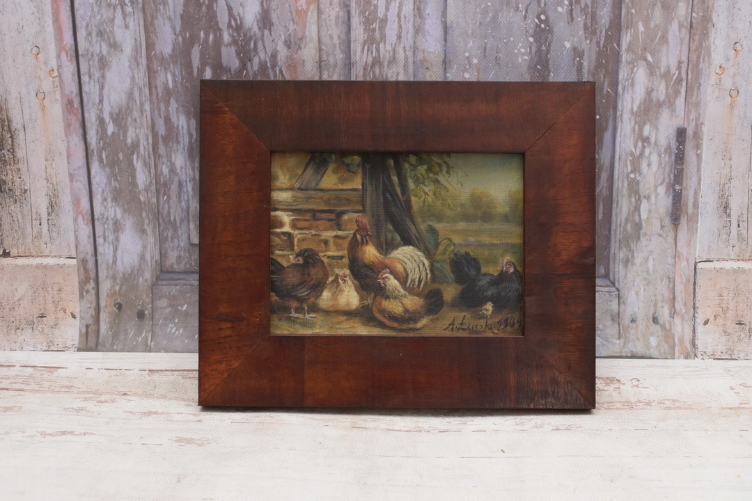 А. Лучко 1904 - Кури Півні Ферма Сільська Ферма - Стара красива картина маслом
