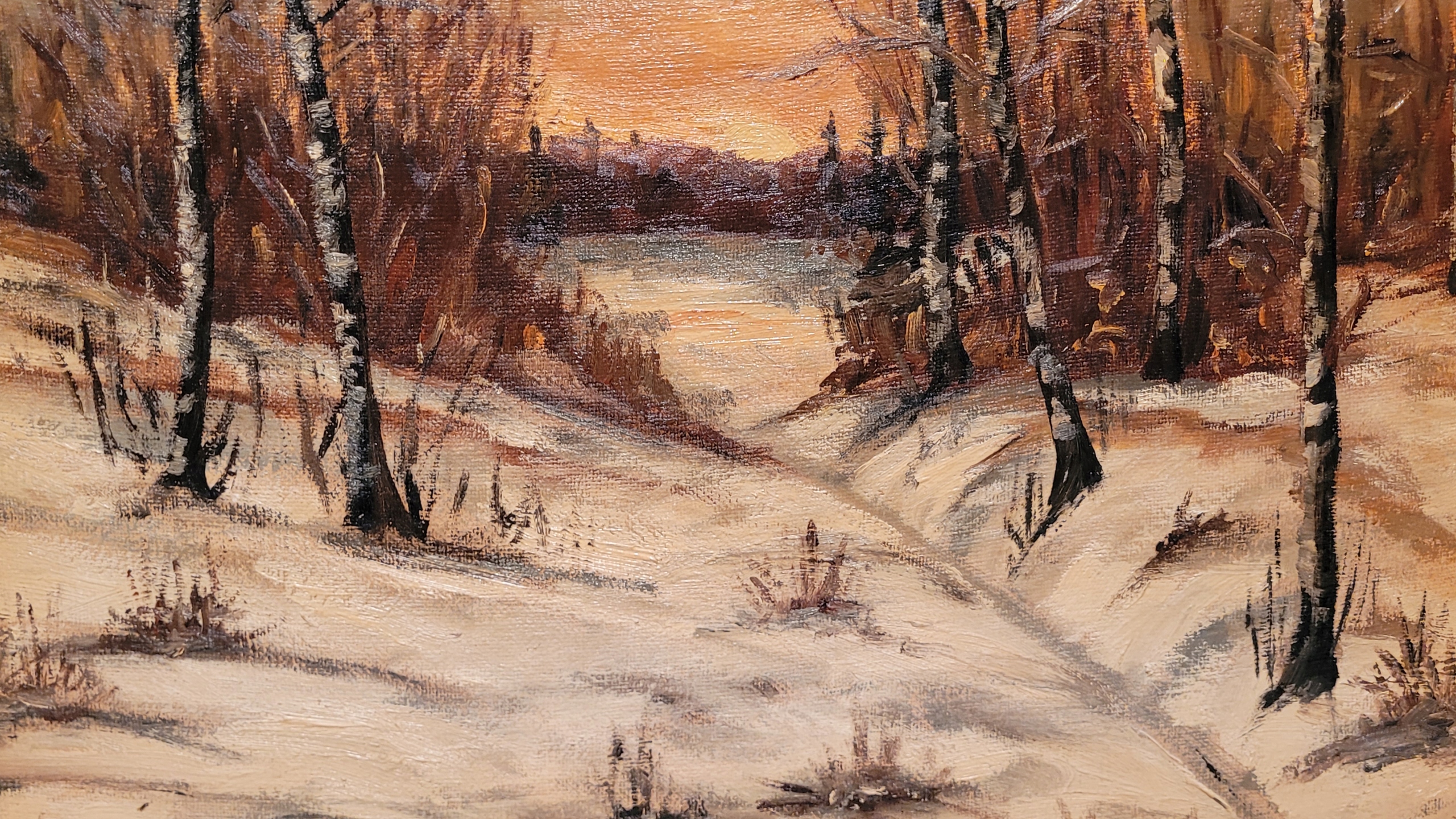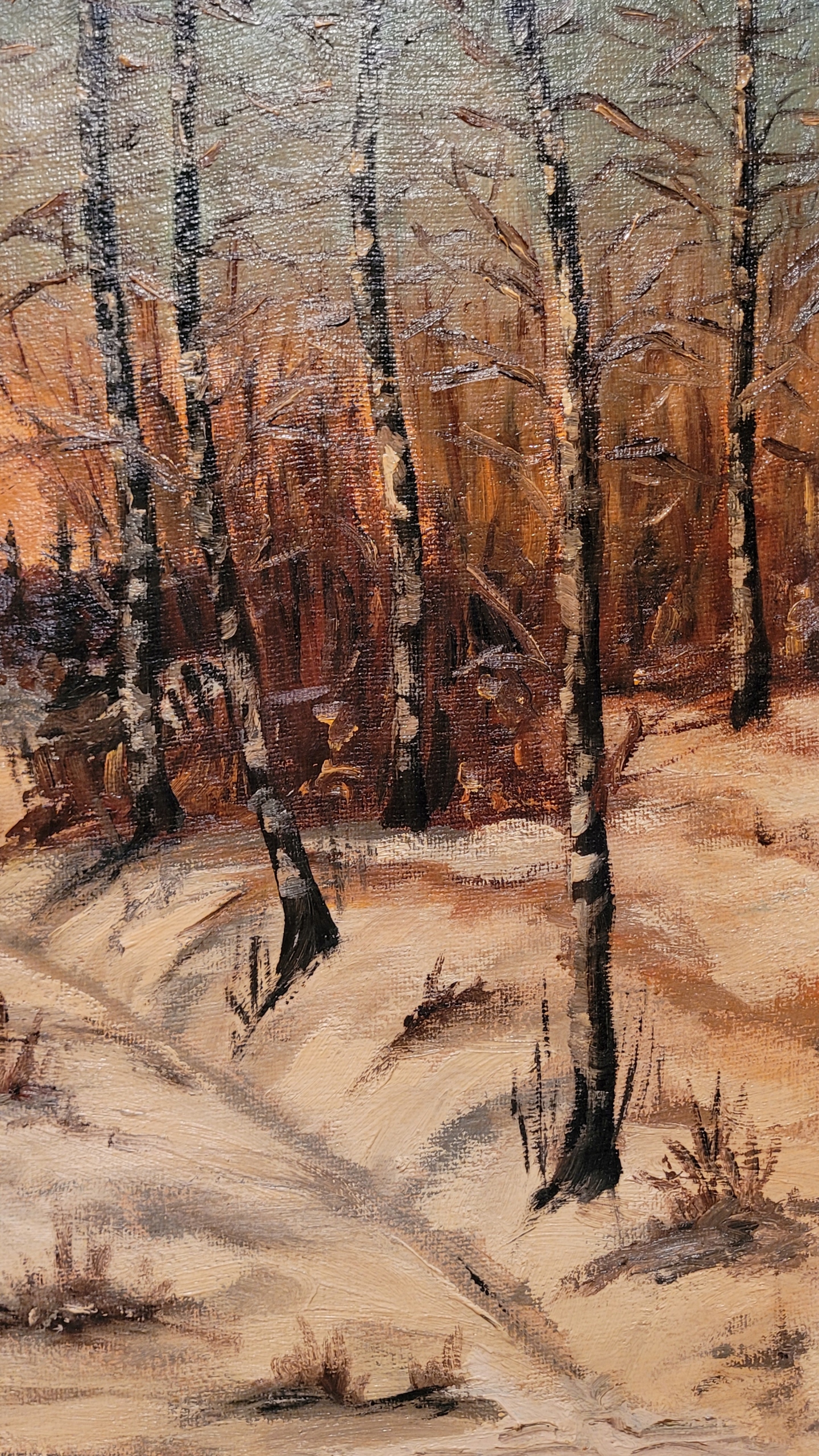 Предмет продажи - красивая старинная картина маслом «ЗИМА В ЛЕСУ».