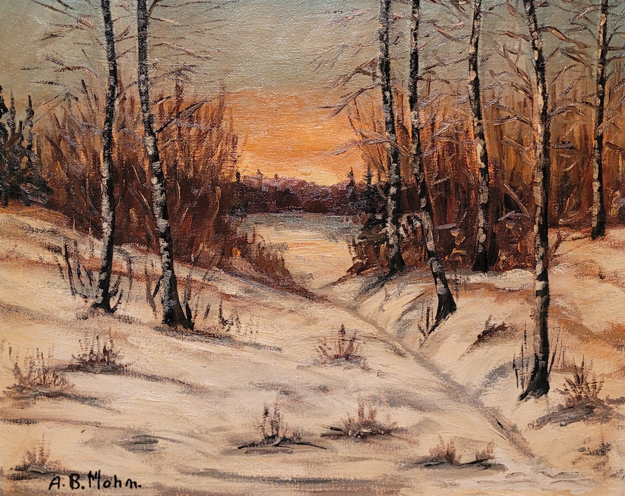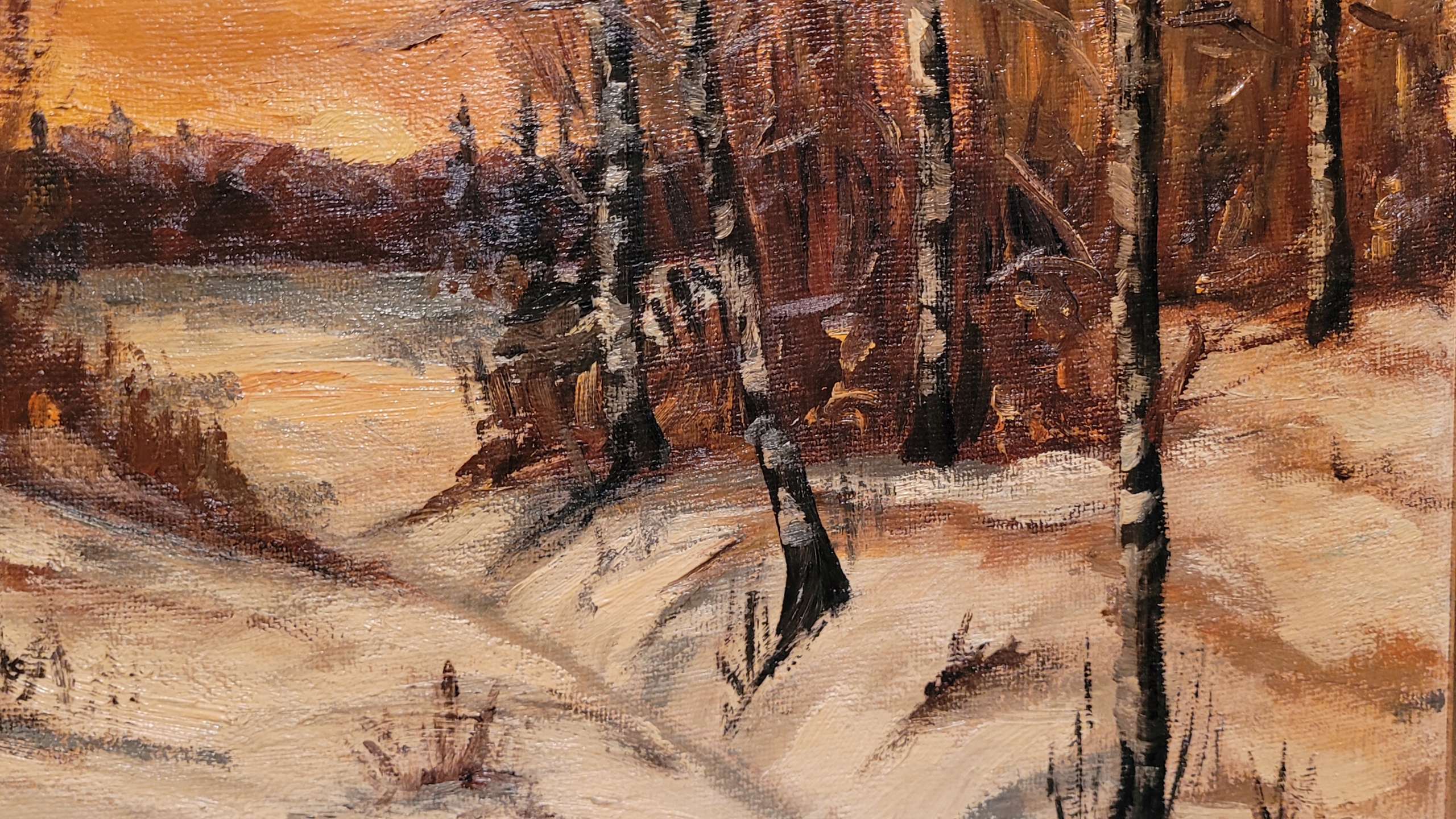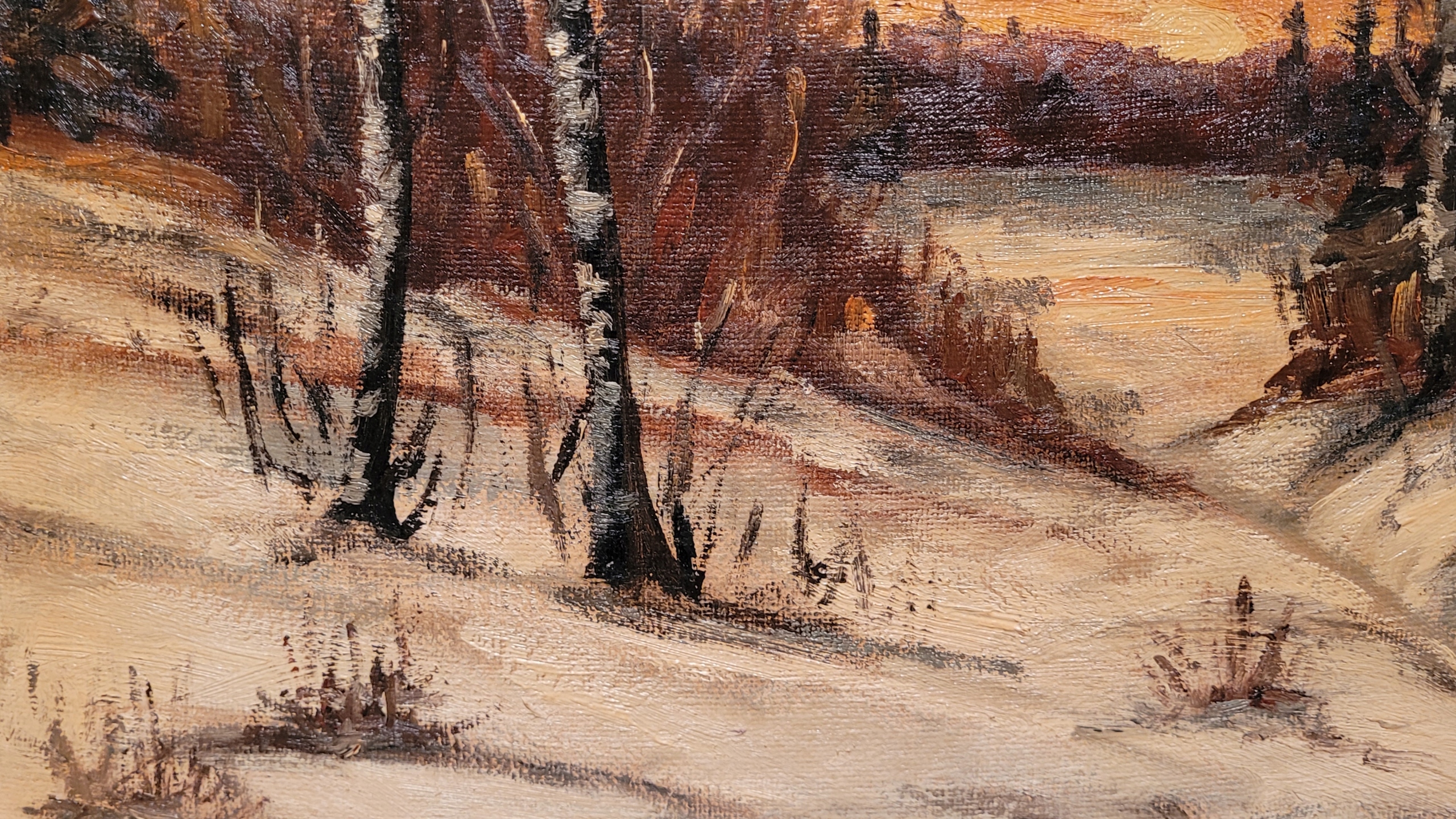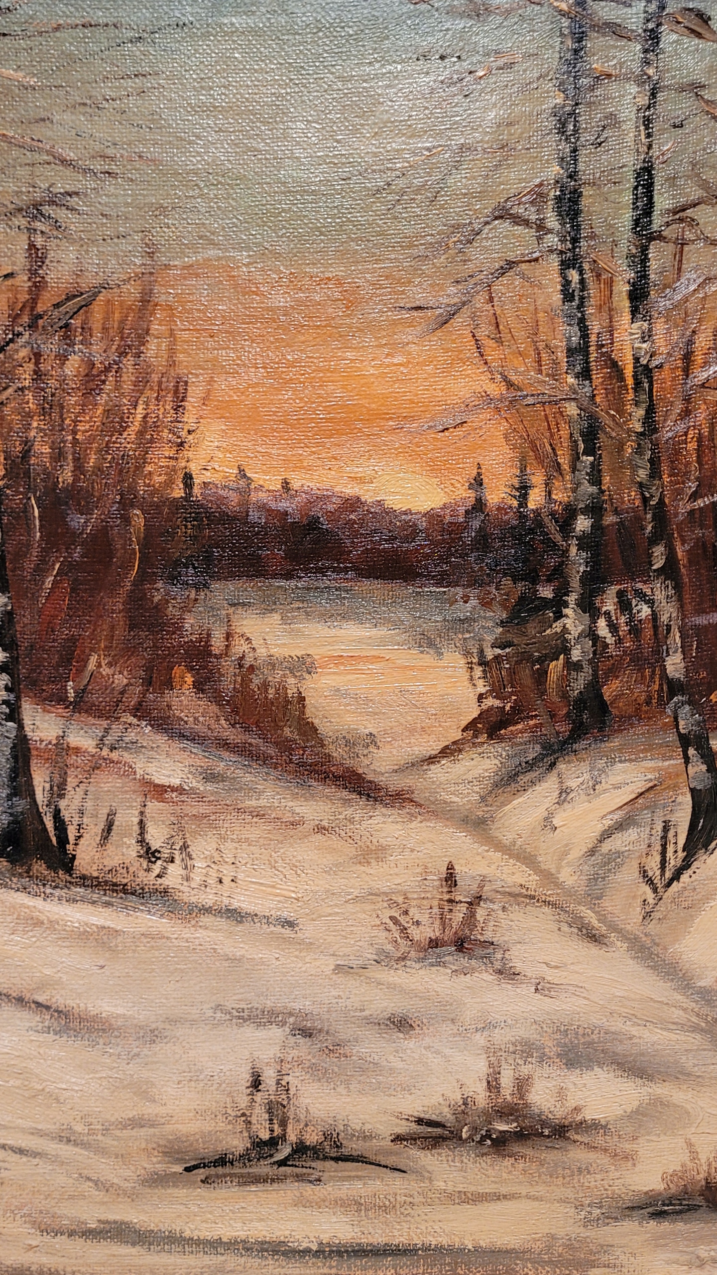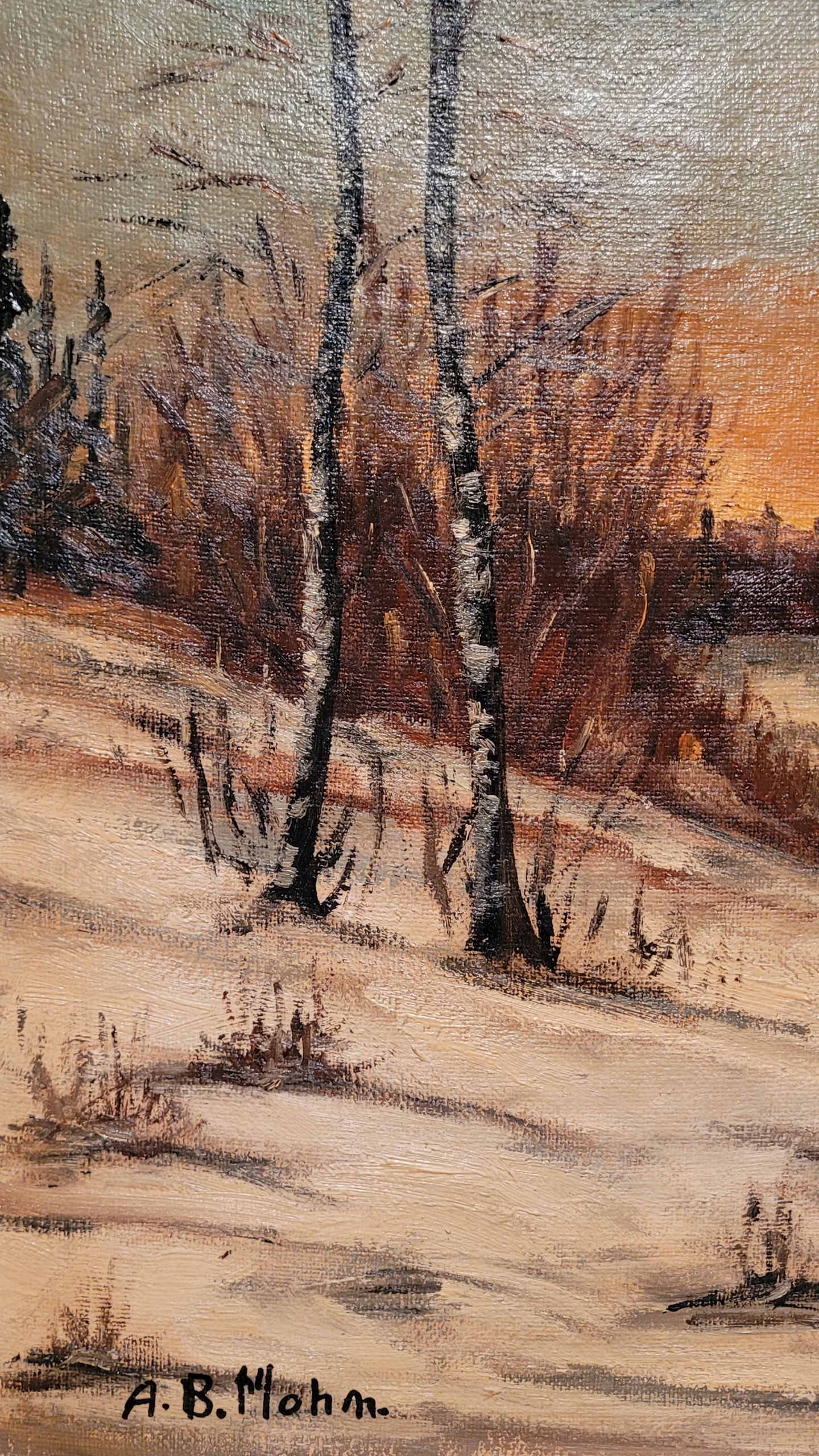 А.Б. МОН - «Зима в лесу», старая нефтяная картина.
