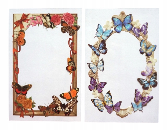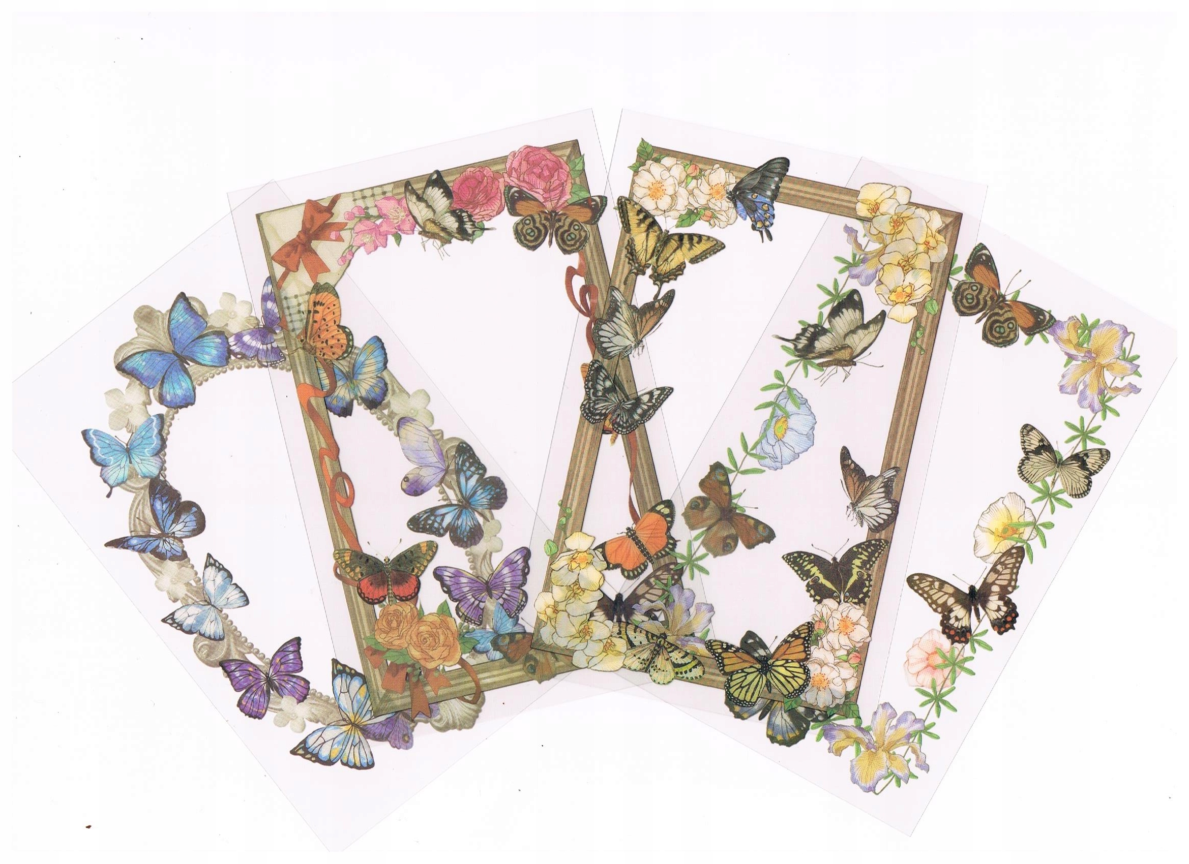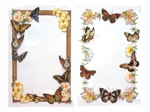 A176 НАКЛЕЙКИ В РАМКУ 8 ШТ. Скрапбукинг БАБОЧКИ 8,5 х 13 см.