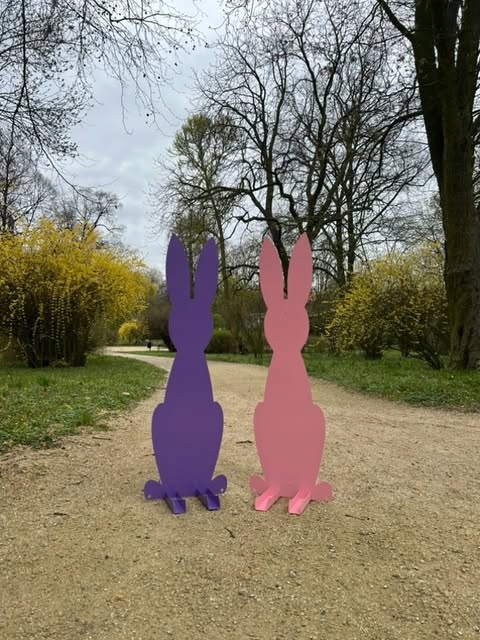 Доступно в пяти цветах: желтый, черный, розовый, фиолетовый и белый, а также в трех размерах: 121 см, 92 см и 73 см в высоту. На открытом воздухе!