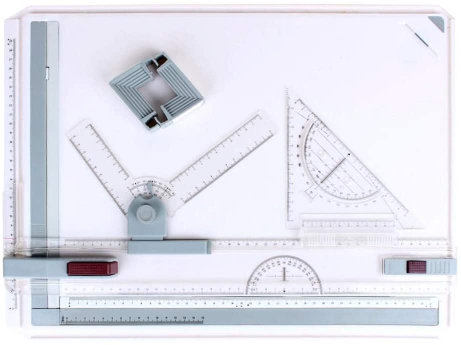 Набор инструментов для рисования b> - Размеры продукта - 50x36,5 см. Сделано из высококачественного акрила, легкого и долговечного. Эргономичный комплект рисования A3 12-сантиметровый вращающийся вкладыш в форме буквы L и 12-сантиметрового треугольника с угловой крышкой проскальзывает в канавку на Т-образной скользящей линии