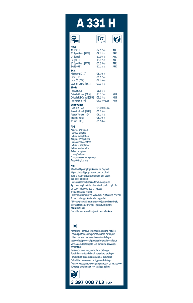 A331H Bosch Wipers Bosch Bod 330 A331H Flat VW Golf Plus/Seat Alhamb