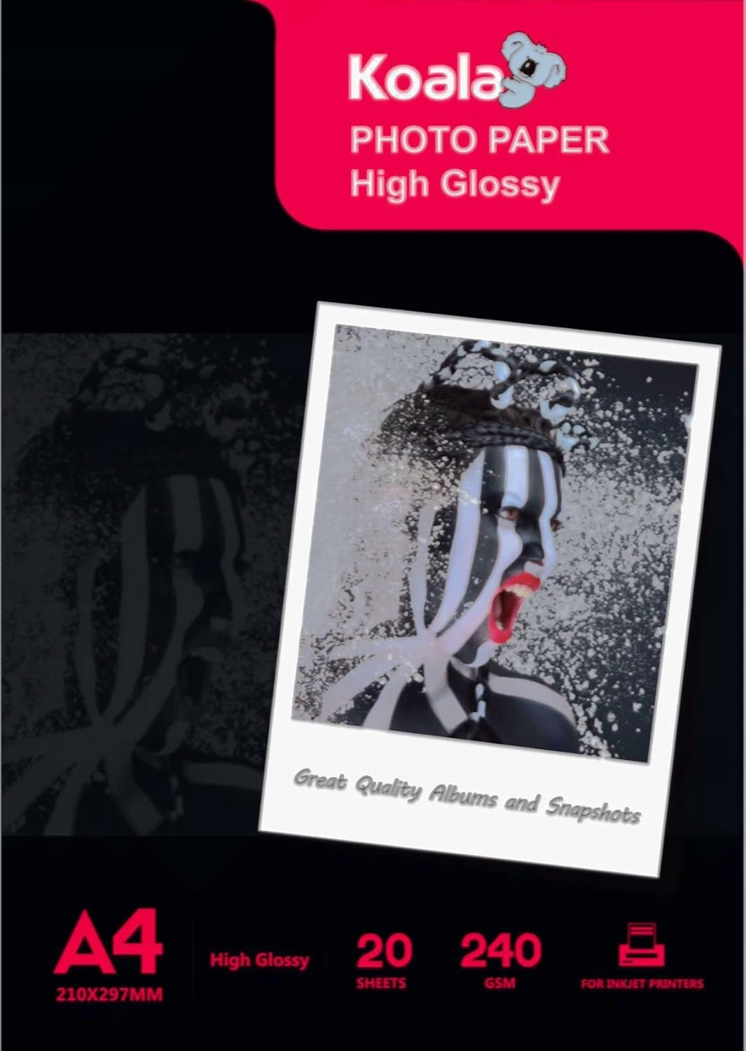 фотографическая бумага koala indjet a4 shiny, 20 листов, 240 г/м², для Canon, HP, HP, Epson