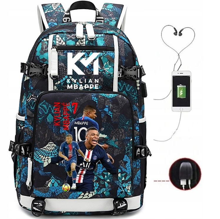A4 рюкзак Kylian Mbappe водонепроницаемые USB -рисунки