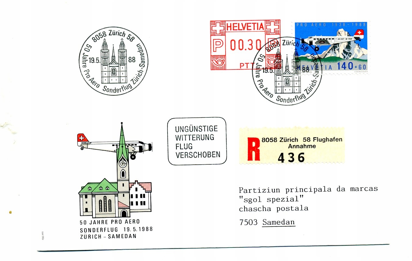 A45442)Samoloty: Schweiz 1369 Luftpostbrief