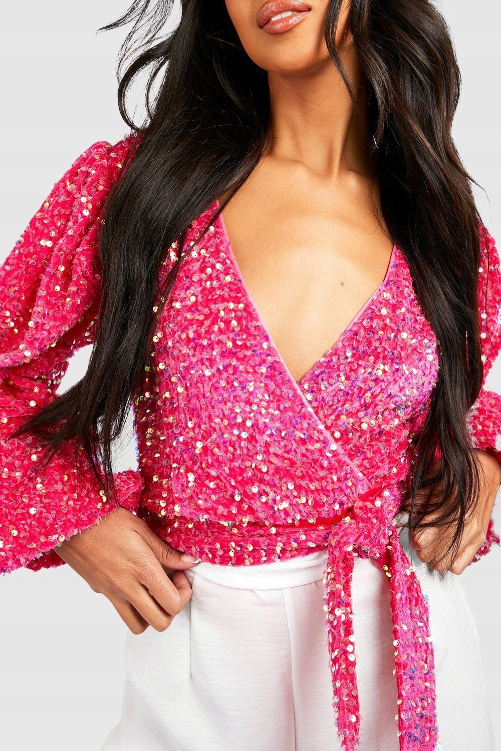 A4D08 РОЗОВОЕ БОДИ С ПАЙЕТКАМИ И ПОЯСОМ BOOHO L